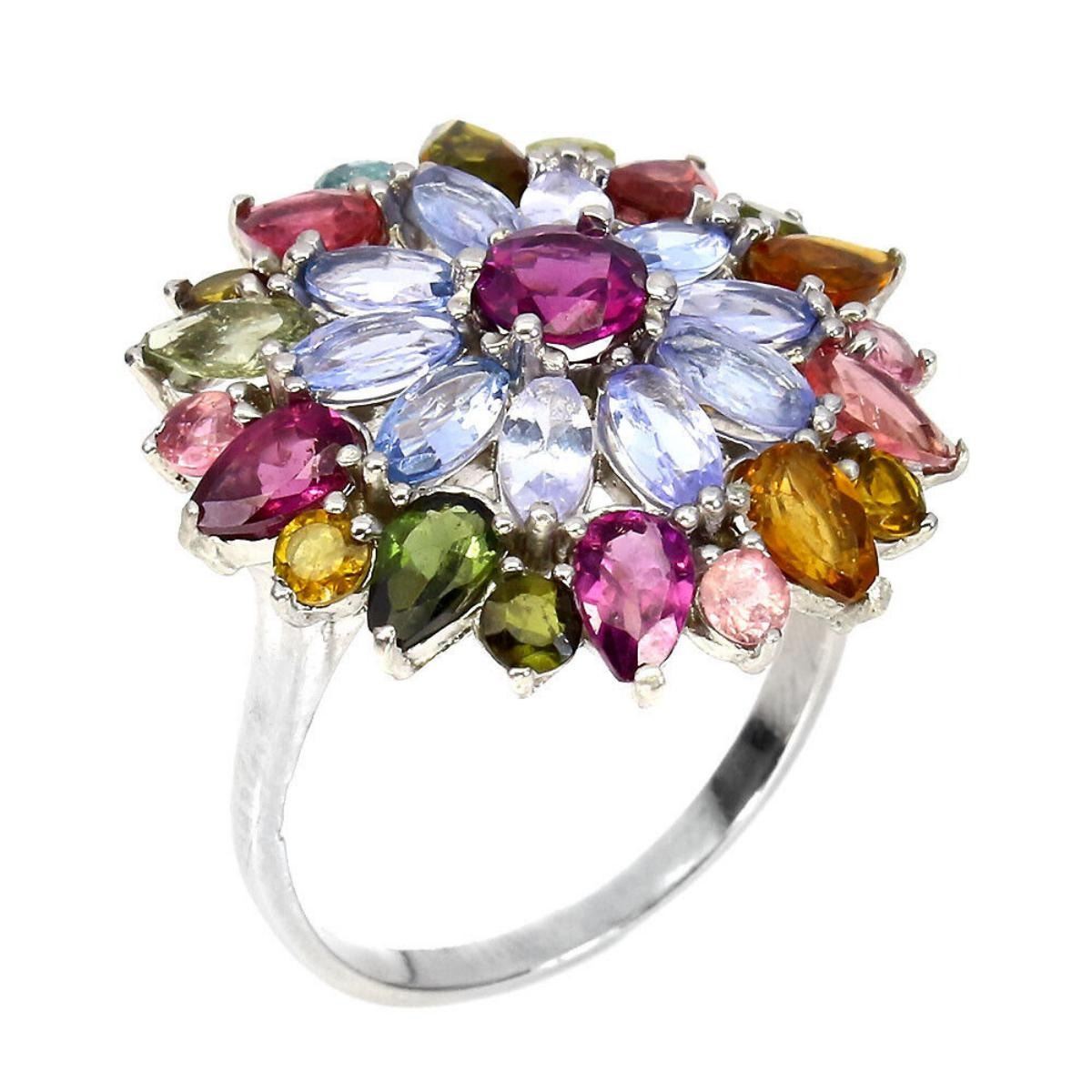 925 STERLING SILVER;PLATE-14K WHITE GOLD;RING SIZE-7.5(RESIZABLE);MAIN STONE-TANZANITE;OTHER GEMS-RHODOLITE GARNET, TOURMALINE;TOTAL WEIGHT-4.75 GRAM (TOTAL WEIGHT OF SILVER + STONE);DIMENSION-* STONE 2.5 TO 5.0 X 3.0 MM.* RING SIZE 7.5* FACE RING 23.0 X 22.0 MM.;MAIN STONE SHAPE-MARQUISE CUT;MAIN STONE COLOR- BLUE VIOLET;CLARITY/GRADE-IF TO VVS;TREATMENT-UNHEATED;ORIGIN-TANZANIA - AFRICA;HARDNESS-7.0 - 7.5;