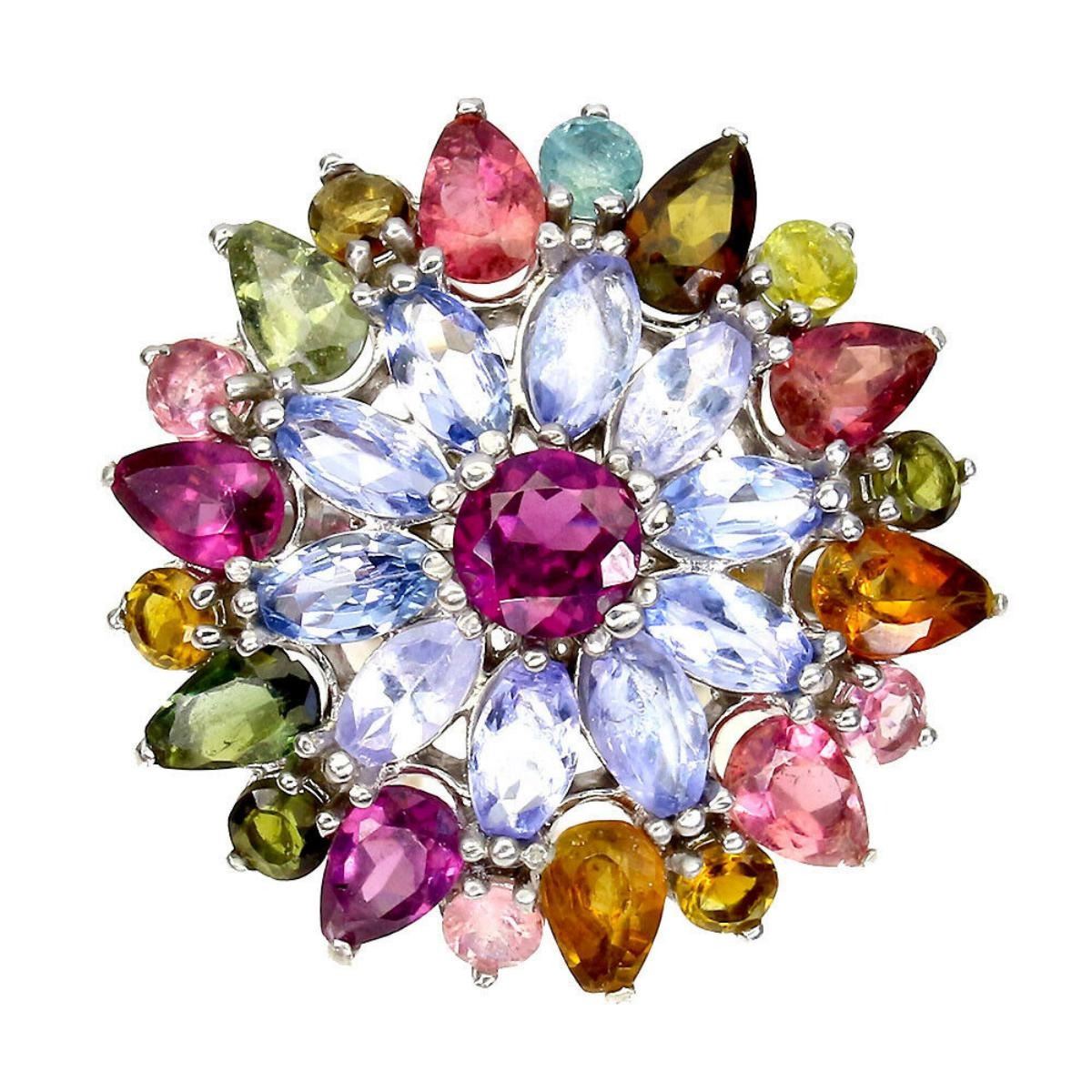 925 STERLING SILVER;PLATE-14K WHITE GOLD;RING SIZE-7.5(RESIZABLE);MAIN STONE-TANZANITE;OTHER GEMS-RHODOLITE GARNET, TOURMALINE;TOTAL WEIGHT-4.75 GRAM (TOTAL WEIGHT OF SILVER + STONE);DIMENSION-* STONE 2.5 TO 5.0 X 3.0 MM.* RING SIZE 7.5* FACE RING 23.0 X 22.0 MM.;MAIN STONE SHAPE-MARQUISE CUT;MAIN STONE COLOR- BLUE VIOLET;CLARITY/GRADE-IF TO VVS;TREATMENT-UNHEATED;ORIGIN-TANZANIA - AFRICA;HARDNESS-7.0 - 7.5;