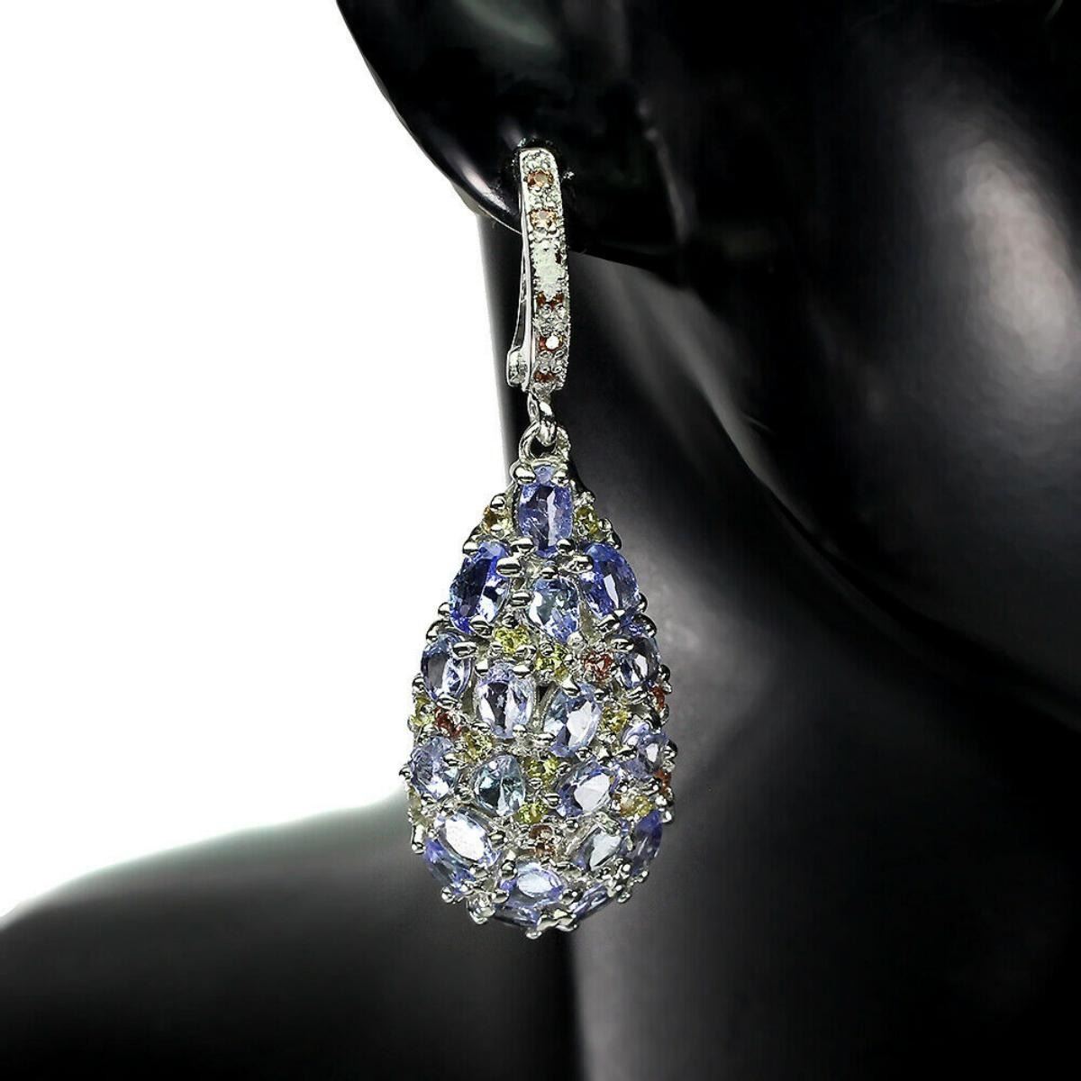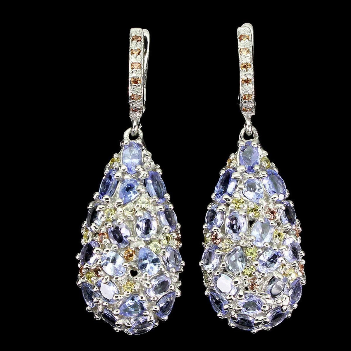 925 STERLING SILVER;PLATE-14K WHITE GOLD;MAIN STONE-TANZANITE;OTHER GEMS-SAPPHIRE;TOTAL WEIGHT-8.86 GRAM (TOTAL WEIGHT OF SILVER + STONE)DIMENSION-* STONE 1.5 TO 5.0 X 3.0 MM. * FACE EARRINGS 42.0 X 16.0 MM.;MAIN STONE SHAPE-OVAL CUT;MAIN STONE COLOR-BLUE VIOLET;CLARITY/GRADE-IF;TREATMENT-UNHEATED;ORIGIN-TANZANIA - AFRICA;