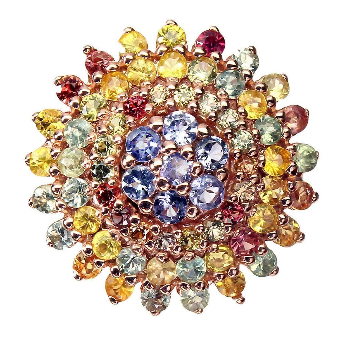925 STERLING SILVER;PLATE-14K ROSE GOLD;RING SIZE(resizeable)8.5;MAIN STONE-TANZANITE;OTHER GEMS-SAPPHIRE;TOTAL WEIGHT-6.63 GRAM (TOTAL WEIGHT OF SILVER + STONE)DIMENSION-* STONE 1.5 TO 3.0 MM. * RING SIZE 8.5 * FACE RING 22.0 X 22.0 MM.;MAIN STONE SHAPE-ROUND CUT;MAIN STONE COLOR- BLUE VIOLET;CLARITY/GRADE-IF TO VVS;TREATMENT-UNHEATED;ORIGIN-TANZANIA - AFRICA;HARDNESS-7.0 - 7.5;