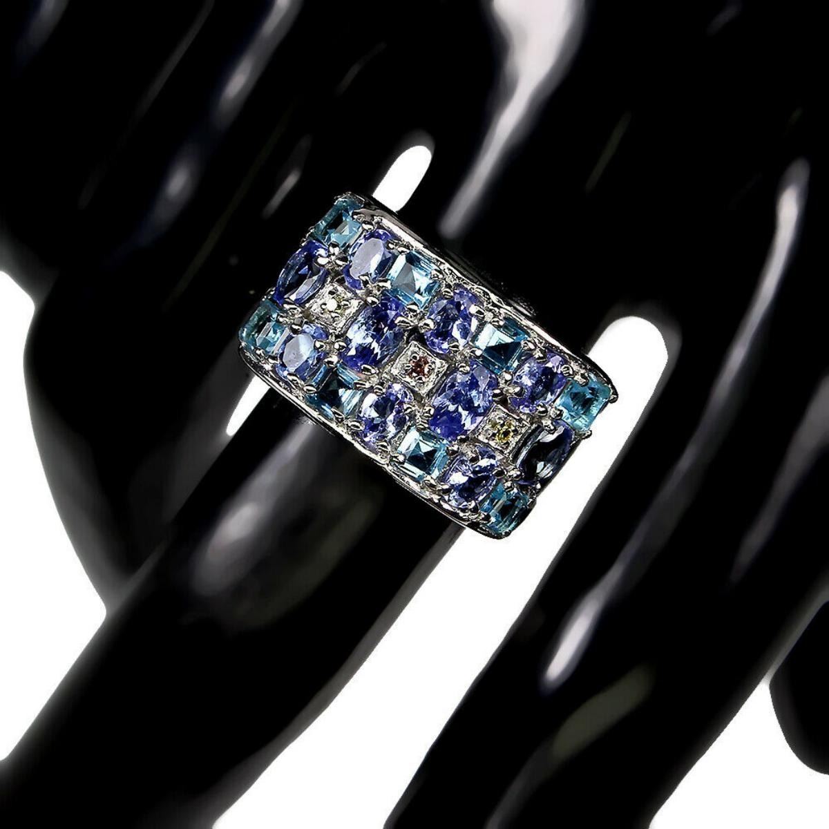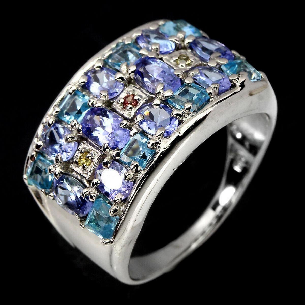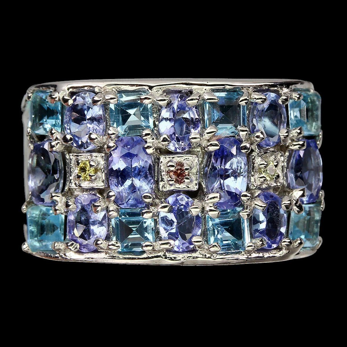 925 STERLING SILVER;PLATE14K WHITE GOLD;RING SIZE/resizeable-9;MAIN STONE-TANZANITE;OTHER GEMS-SKY BLUE TOPAZ, SAPPHIRE DIAMOND CUT;TOTAL WEIGHT-5.71 GRAM (TOTAL WEIGHT OF SILVER + STONE)DIMENSION-* STONE 1.0 TO 5.0 X 3.0 MM.;* FACE RING- 21.0 X 13.0 MM.;MAIN STONE SHAPE-OVAL CUT;MAIN STONE COLOR- BLUE VIOLET;CLARITY/GRADE-IF;TREATMENT-UNHEATED;ORIGINTANZANIA - AFRICA;HARDNESS-7.0 - 7.5;