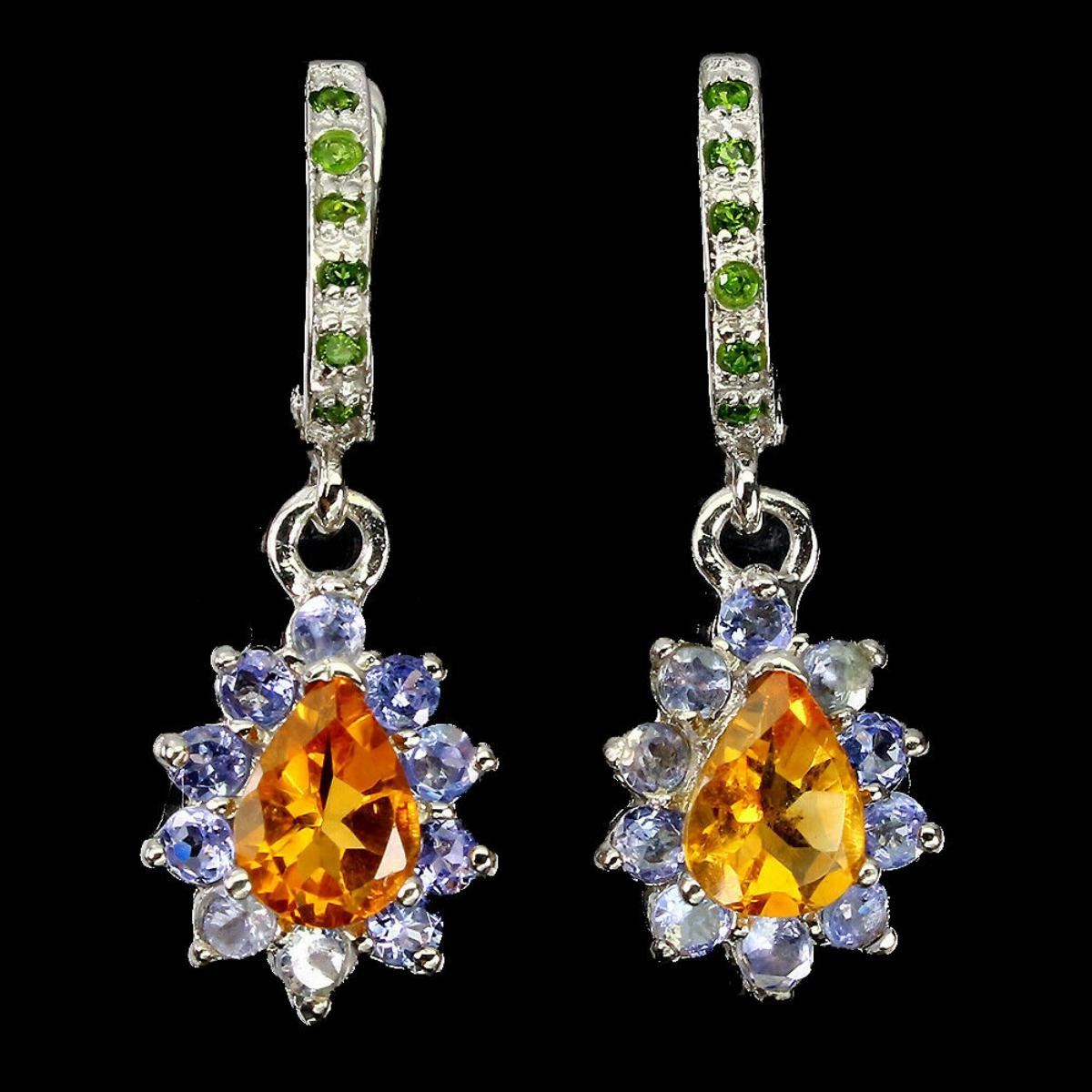925 STERLING SILVER;PLATE-14K WHITE GOLD;MAIN STONE-CITRINE;OTHER GEMS-CHROME DIOPSIDE, TANZANITE;TOTAL WEIGHT-5.27 GRAM (TOTAL WEIGHT OF SILVER + STONE)DIMENSION-* STONE 1.0 TO 8.0 X 6.0 MM. * FACE EARRINGS 31.0 X 11.0 MM.;MAIN STONE SHAPE-PEAR CUT;MAIN STONE COLOR-TOP RICH YELLOW;CLARITY/GRADE-IF TO VVS;TREATMENT-UNHEATED;ORIGIN-BRAZIL;HARDNESS-7;