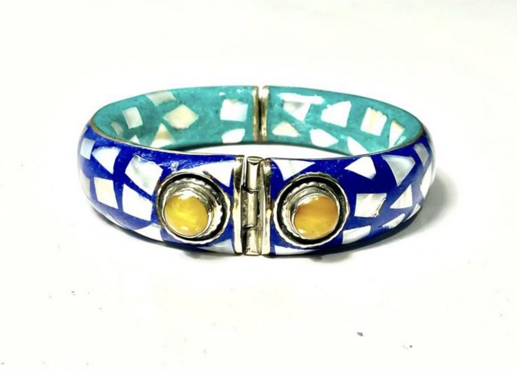 Natural Tibet Hand Made Tibet Lapis Lazuli & Turquoise free size Bangle.......This Bangle is made by Tibet Tribal ladies...completely natural stones....its free size as there is lock to open the bangle and fits all sizes.