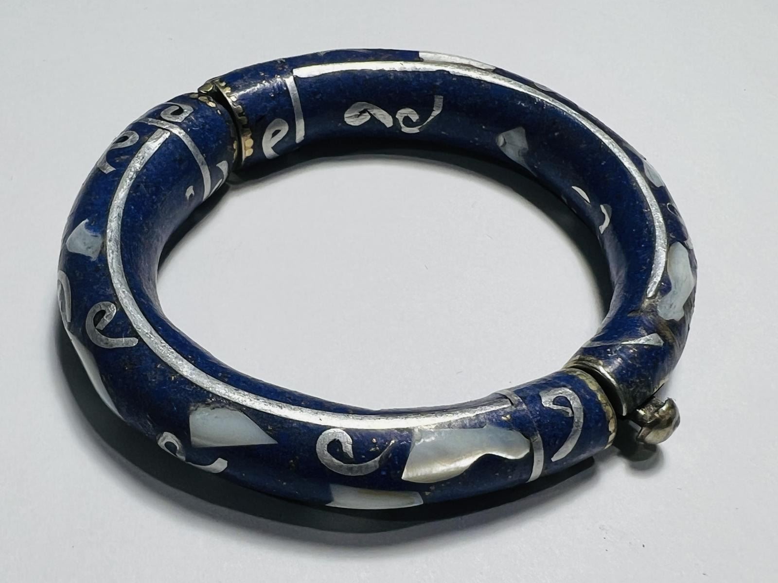 Natural Tibet Hand Made Lapiz Lazuli & Sea Shell free size Bangle.......This Bangle is made by Tibet Tribal ladies...completely natural stones....its free size as there is lock to open the bangle and fits all sizes.