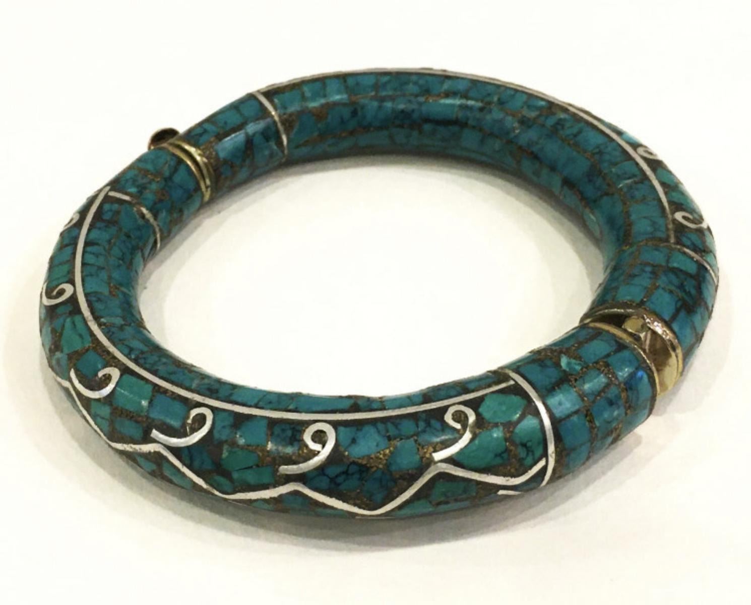 Natural Tibet Hand Made Turquoise free size Bangle.......This Bangle is made by Tibet Tribal ladies...completely natural stones....its free size as there is lock to open the bangle and fits all sizes.