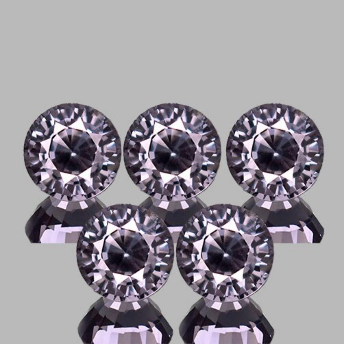 Natural Spinel; WEIGHT : 2.18 cts; SHAPE : Round; SIZE ( L x W x D ) : 4.50 mm; QUANTITY : 5 pieces; COLOR : Titanium Violet; CLARITY : Flawless-VVS1 ; ORIGIN : Mogok, Burma; HARDNESS : 8.5; LUSTER : Excellent!! TREATMENT : 100% Natural Unheated;