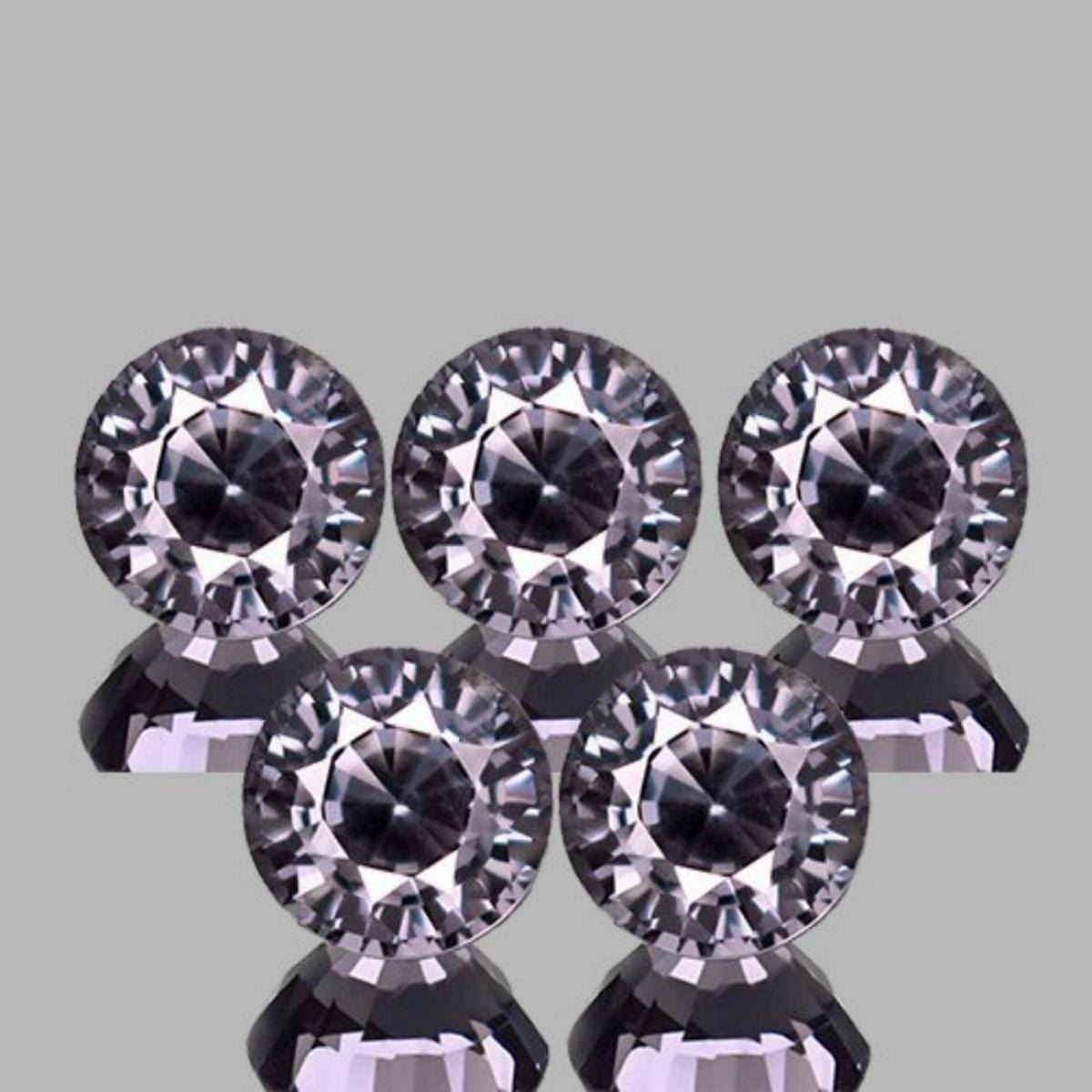 Natural Spinel; WEIGHT : 2.18 cts; SHAPE : Round; SIZE ( L x W x D ) : 4.50 mm; QUANTITY : 5 pieces; COLOR : Titanium Violet; CLARITY : Flawless-VVS1 ; ORIGIN : Mogok, Burma; HARDNESS : 8.5; LUSTER : Excellent!! TREATMENT : 100% Natural Unheated;