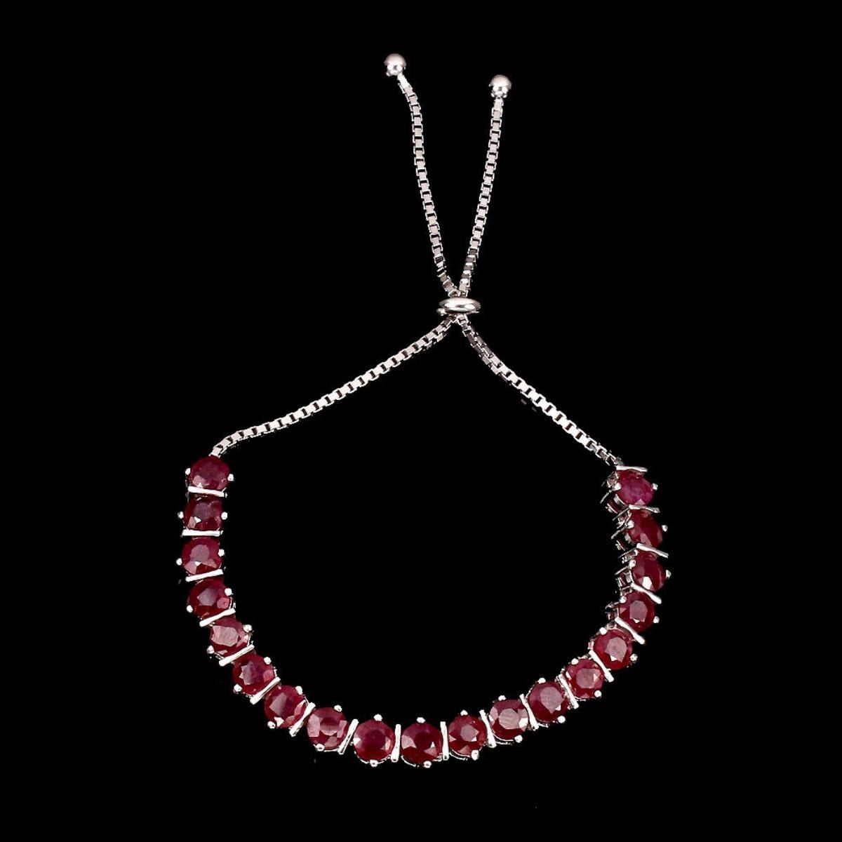 925 STERLING SILVERPLATE14K WHITE GOLDRING SIZE/LENGTH (INCHES)10MAIN STONERUBYOTHER GEMSTOTAL WEIGHT67.10 CT (TOTAL WEIGHT OF SILVER + STONE)DIMENSION* STONE 5.0 MM. * FACE BRACELET 100.0 X 6.0 MM.MAIN STONE SHAPEROUND CUTMAIN STONE COLORTOP BLOOD REDCLARITY/GRADETRANSPARENTLUSTERMESMERIZINGTREATMENT-Yes;ORIGINMADAGASCARHARDNESS9.0
