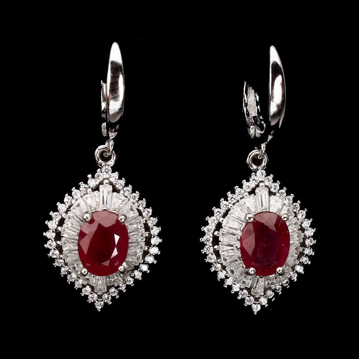925 STERLING SILVER;PLATE14K WHITE GOLD;MAIN STONE RUBY OTHER GEMS CUBIC ZIRCONIA TOTAL WEIGHT 32.38 CT (TOTAL WEIGHT OF SILVER + STONE)DIMENSION* STONE 8.0 X 6.0 MM. * CZ 1.0 TO 3.0 X 1.5 MM. * FACE EARRINGS 35.0 X 15.0 MM.MAIN STONE SHAPEOVAL CUTMAIN STONE COLORTOP BLOOD REDCLARITY/GRADE TRANSPARENT LUSTER GORGEOUS TREATMENT- Yes;ORIGIN MADAGASCAR HARDNESS 9