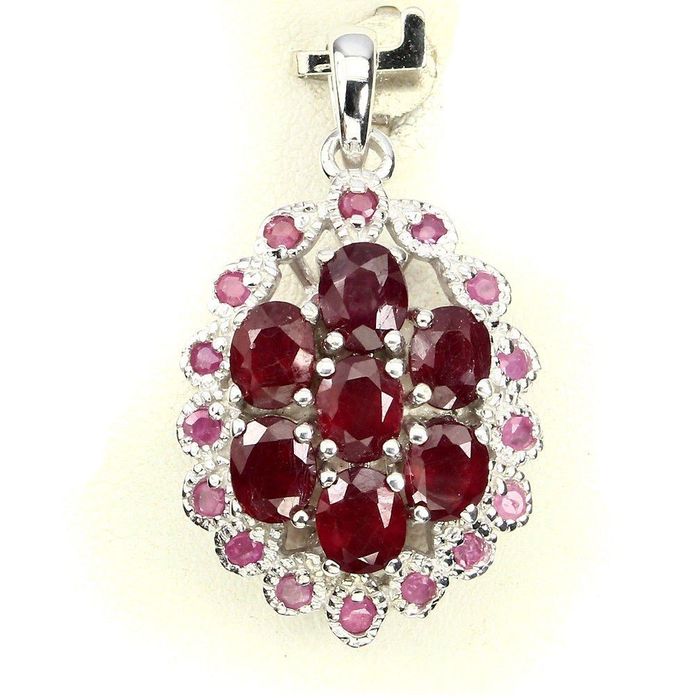 925 STERLING SILVER;PLATE14K WHITE GOLD;MAIN STONERUBY;TOTAL WEIGHT27.46 CT (TOTAL WEIGHT OF SILVER + STONE)DIMENSION* STONE 1.5 TO 5.0 X 4.0 MM. * FACE PENDANT 31.0 X 18.0 MM.MAIN STONE SHAPEOVAL CUTMAIN STONE COLORTOP BLOOD REDCLARITY/GRADETRANSPARENTLUSTERGORGEOUSTREATMENT- YesORIGINMADAGASCARHARDNESS9.0