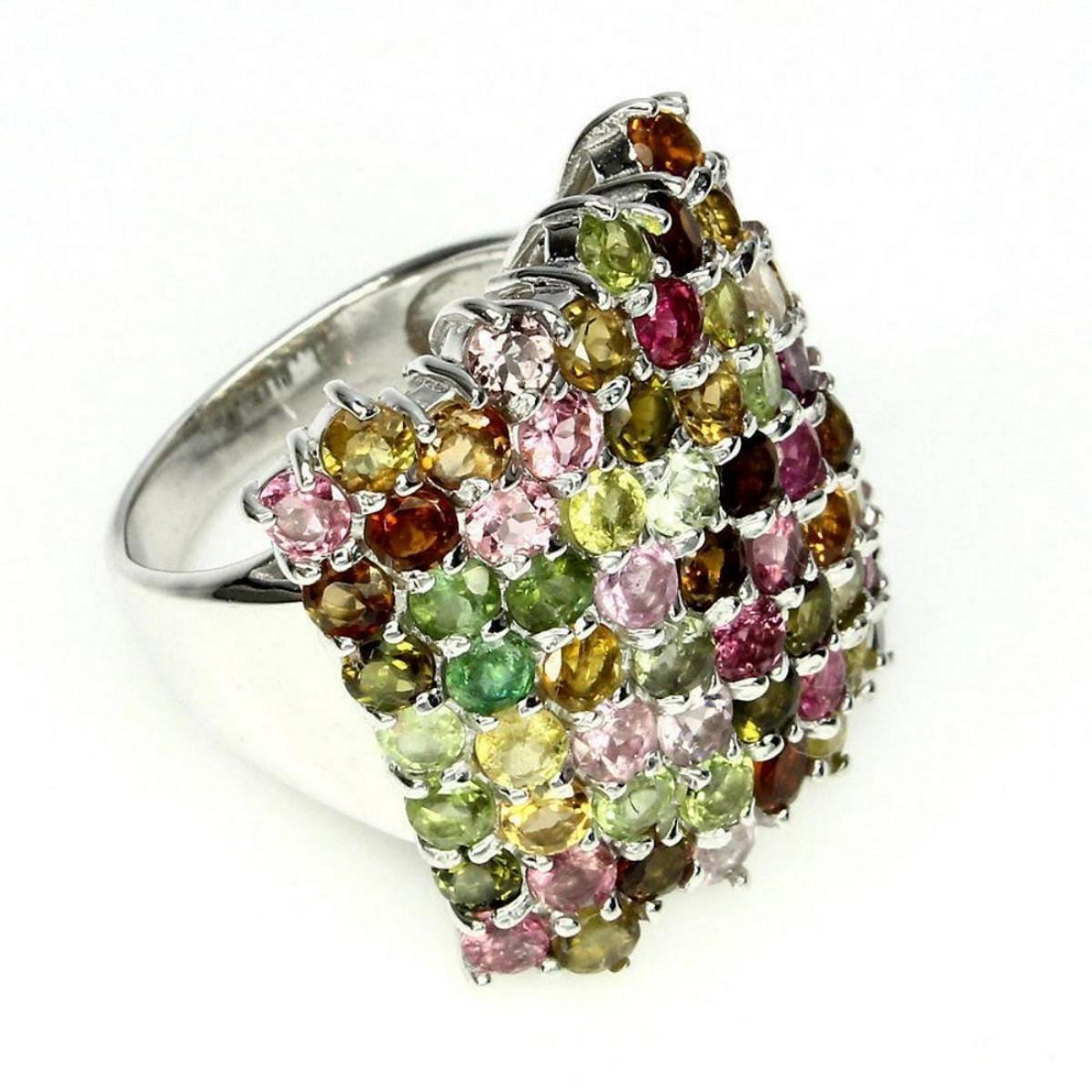 925 STERLING SILVER;PLATE14K WHITE GOLD;RING SIZE8.5(resizable)MAIN STONETOURMALINEOTHER GEMSTOTAL WEIGHT55.95 CT (TOTAL WEIGHT OF SILVER + STONE)DIMENSION* STONE 3.0 MM. * RING SIZE 8.5 * FACE RING 26.0 X 24.0 MM.MAIN STONE SHAPEROUND CUTMAIN STONE COLORMULTI-COLORCLARITY/GRADEIF TO VVSLUSTERGRACEFULLYTREATMENTUNHEATEDORIGINBRAZILHARDNESS7.0 - 7.5