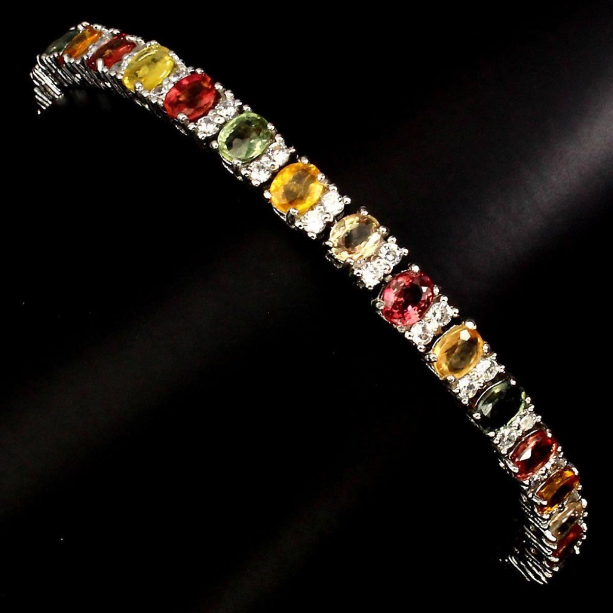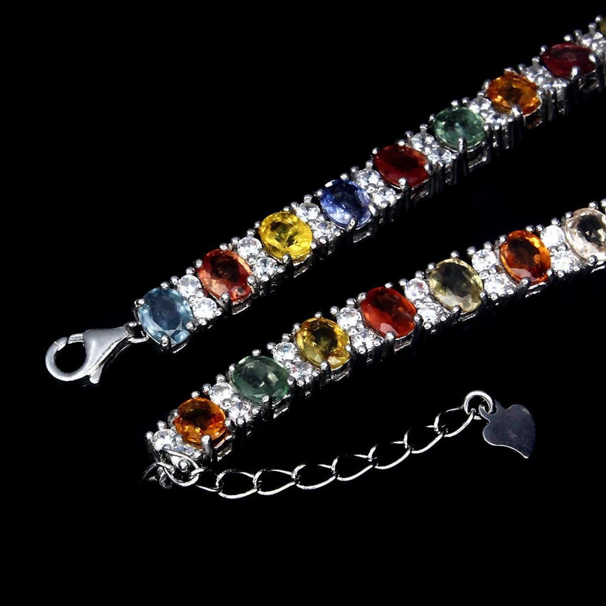 925 STERLING SILVERPLATE14K WHITE GOLD;LENGTH (INCHES)8.5MAIN STONESAPPHIREOTHER GEMSCUBIC ZIRCONIATOTAL WEIGHT82.40 CT (TOTAL WEIGHT OF SILVER + STONE)DIMENSION* STONE 5.0 X 4.0 MM. * CZ 2.0 MM. * FACE BRACELET 190.0 X 6.0 MM.MAIN STONE SHAPEOVAL CUTMAIN STONE COLORMULTI-COLORCLARITY/GRADEIF TO VVSLUSTERWONDERFULTREATMENTHEATEDORIGINSONGEA - AFRICA
