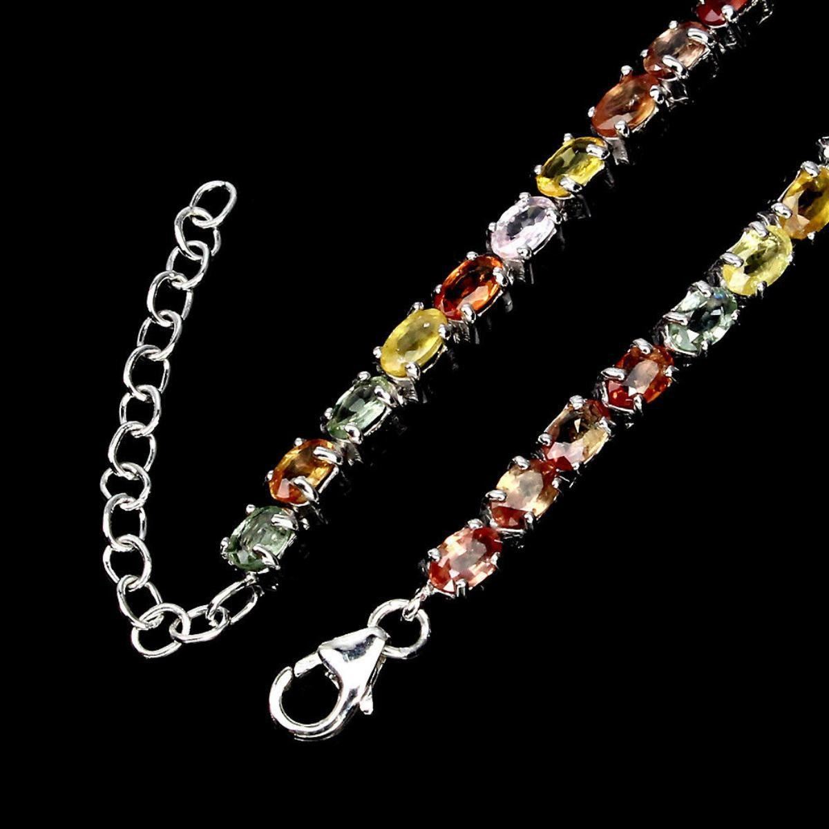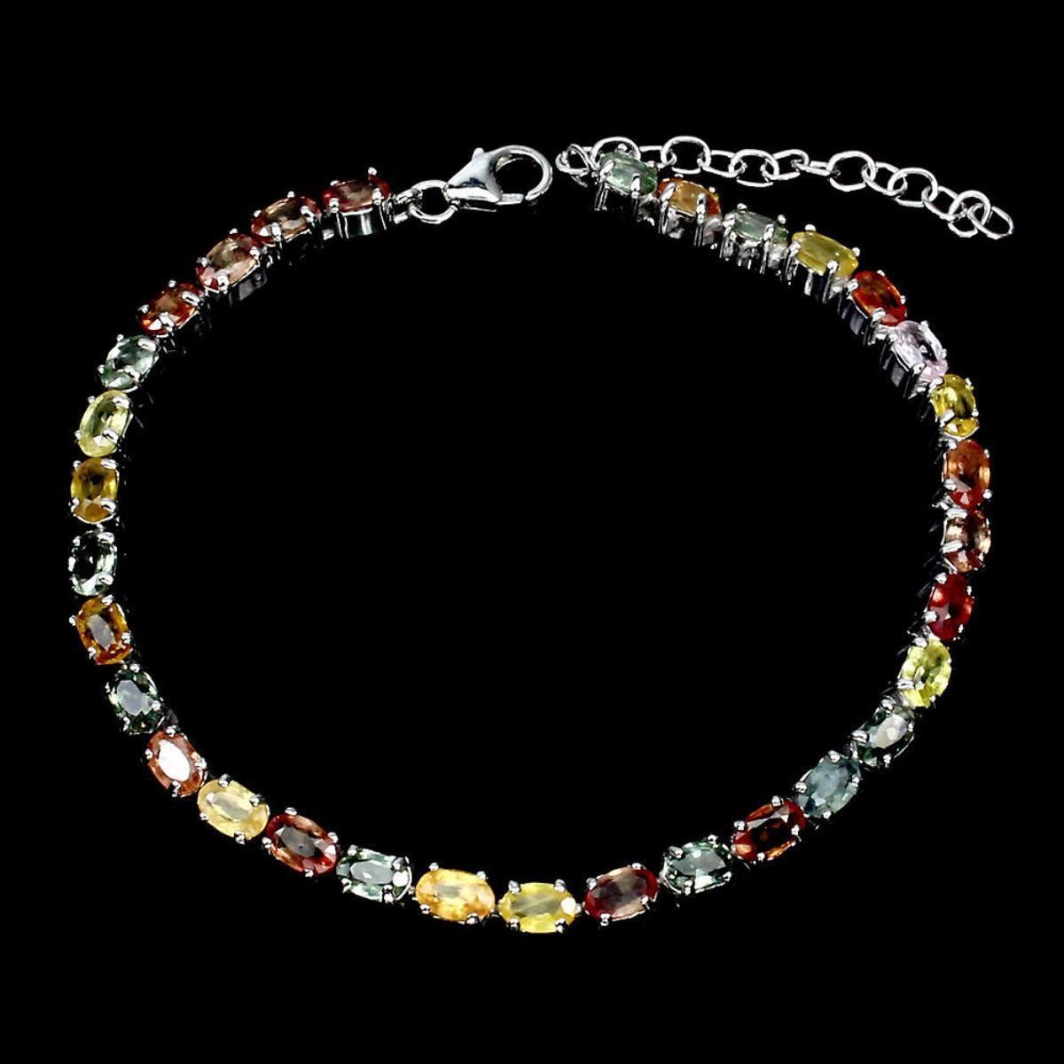 925 STERLING SILVER;PLATE14K WHITE GOLD; LENGTH (INCHES)8.5MAIN STONESAPPHIREOTHER GEMSTOTAL WEIGHT44.88 CT (TOTAL WEIGHT OF SILVER + STONE)DIMENSION* STONE 5.0 X 3.0 MM. * FACE BRACELET 165.0 X 3.0 MM.MAIN STONE SHAPEOVAL CUTMAIN STONE COLORTOP FANCY COLORSCLARITY/GRADEIF TO VVSLUSTERBEWITCHINGTREATMENTHEATEDORIGIN - AFRICAHARDNESS9.0