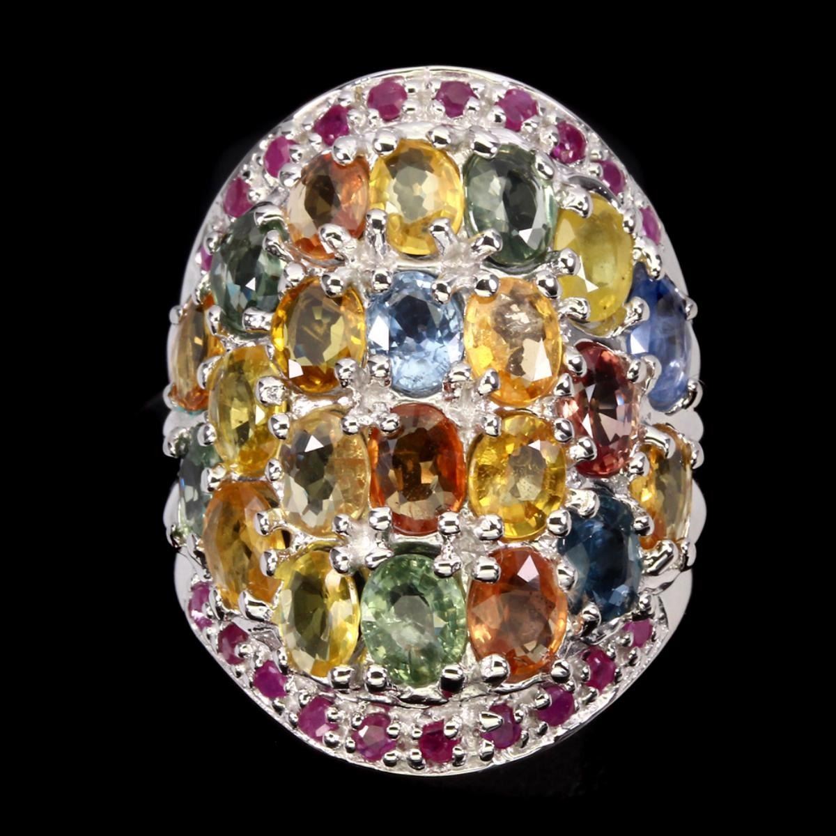 925 STERLING SILVER;PLATE14K WHITE GOLD;RING SIZE...9(resizeable)MAIN STONESAPPHIREOTHER GEMSRUBYTOTAL WEIGHT57.50 CT (TOTAL WEIGHT OF SILVER + STONE)DIMENSION* STONE 1.5 TO 4.0 X 3.0 MM. * FACE RING 28.0 X 21.0 MM.MAIN STONE SHAPEOVAL CUTMAIN STONE COLORTOP FANCY COLORSCLARITY/GRADEIF TO VVSLUSTERDELIGHTFULTREATMENTHEATEDORIGINSONGEA - AFRICAHARDNESS9.0