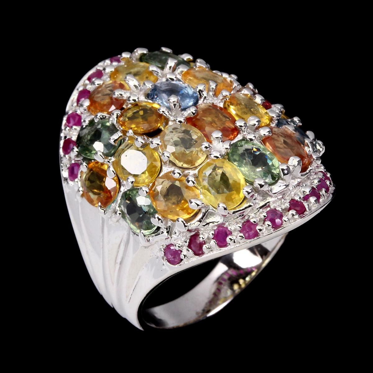 925 STERLING SILVER;PLATE14K WHITE GOLD;RING SIZE...9(resizeable)MAIN STONESAPPHIREOTHER GEMSRUBYTOTAL WEIGHT57.50 CT (TOTAL WEIGHT OF SILVER + STONE)DIMENSION* STONE 1.5 TO 4.0 X 3.0 MM. * FACE RING 28.0 X 21.0 MM.MAIN STONE SHAPEOVAL CUTMAIN STONE COLORTOP FANCY COLORSCLARITY/GRADEIF TO VVSLUSTERDELIGHTFULTREATMENTHEATEDORIGINSONGEA - AFRICAHARDNESS9.0