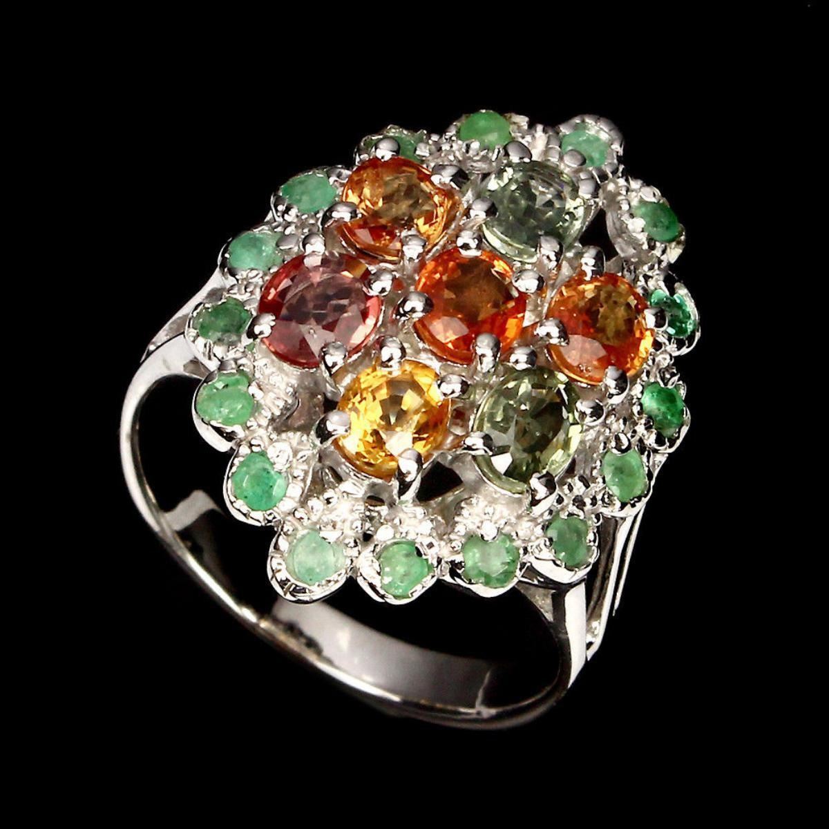 925 STERLING SILVER;PLATE14K WHITE GOLD;RING SIZE8 (resizeable)MAIN STONESAPPHIRE;OTHER GEMSEMERALD;TOTAL WEIGHT30.54 CT (TOTAL WEIGHT OF SILVER + STONE)DIMENSION* STONE 2.0 TO 5.0 X 4.0 MM. * FACE RING 23.0 X 18.0 MM.MAIN STONE SHAPEOVAL CUTMAIN STONE COLORTOP FANCY COLORSCLARITY/GRADEIF TO VVSLUSTERGORGEOUSTREATMENTHEATEDORIGINSONGEA - AFRICAHARDNESS7.5 - 9.0