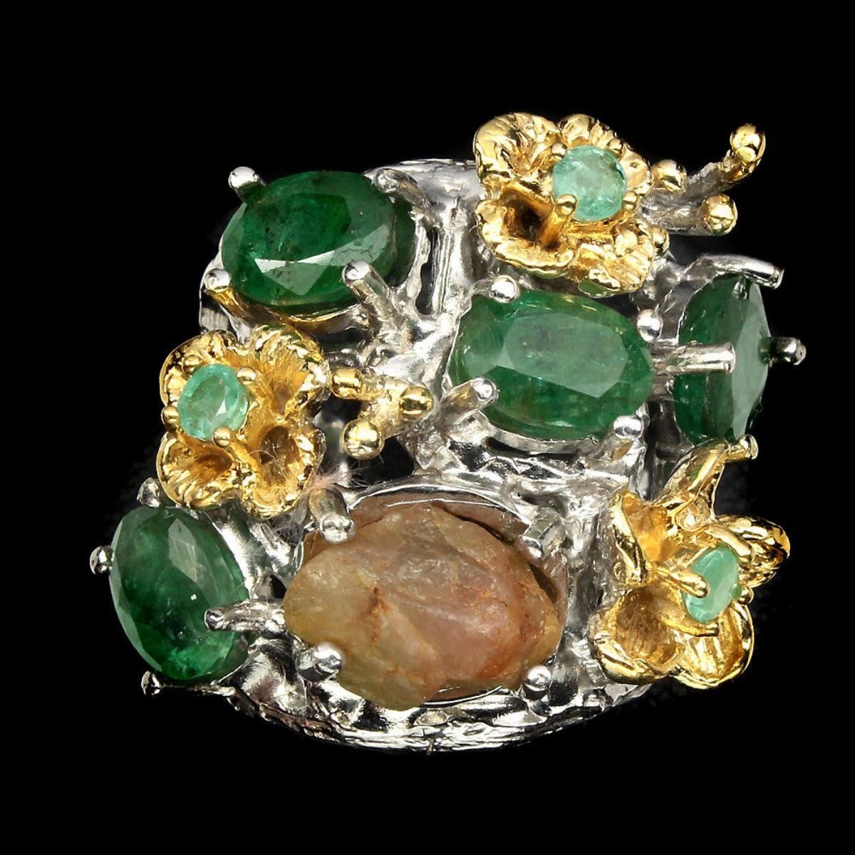 925 STERLING SILVER;PLATE2-TONE WHITE & YELLOW 14K GOLD;RING SIZE9(resizeable)MAIN STONEEMERALDOTHER GEMSSAPPHIRETOTAL WEIGHT81.64 CT (TOTAL WEIGHT OF SILVER + STONE)DIMENSION* STONE 3.0 TO 11.0 X 8.0 MM. * FACE RING 28.0 X 25.0 MM.MAIN STONE SHAPEOVAL CUTMAIN STONE COLORTOP RICH GREENCLARITY/GRADETRANSPARENTLUSTERMESMERIZINGTREATMENTUNHEATEDORIGINBRAZILHARDNESS7.5 - 9.0