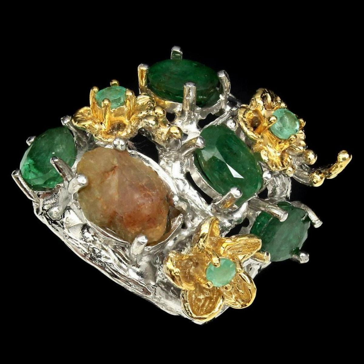 925 STERLING SILVER;PLATE2-TONE WHITE & YELLOW 14K GOLD;RING SIZE9(resizeable)MAIN STONEEMERALDOTHER GEMSSAPPHIRETOTAL WEIGHT81.64 CT (TOTAL WEIGHT OF SILVER + STONE)DIMENSION* STONE 3.0 TO 11.0 X 8.0 MM. * FACE RING 28.0 X 25.0 MM.MAIN STONE SHAPEOVAL CUTMAIN STONE COLORTOP RICH GREENCLARITY/GRADETRANSPARENTLUSTERMESMERIZINGTREATMENTUNHEATEDORIGINBRAZILHARDNESS7.5 - 9.0