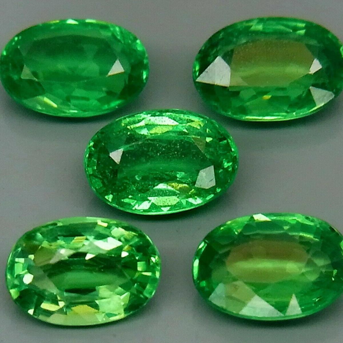 Tsavorite Garnet SHAPE Oval WEIGHT 2.30 Ct.SIZE 6 X 4 mm QUANTITY 5 PiecesCOLORTop GreenCLARITYVS & SI LUSTER Superior ORIGIN Tanzania TREATMENT None HARDNESS 7-7.5