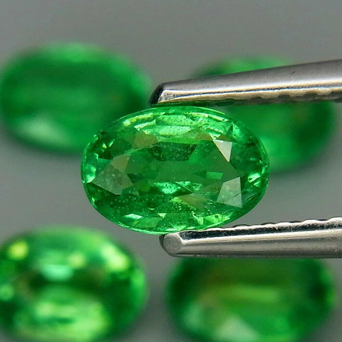 Tsavorite Garnet SHAPE Oval WEIGHT 2.30 Ct.SIZE 6 X 4 mm QUANTITY 5 PiecesCOLORTop GreenCLARITYVS & SI LUSTER Superior ORIGIN Tanzania TREATMENT None HARDNESS 7-7.5