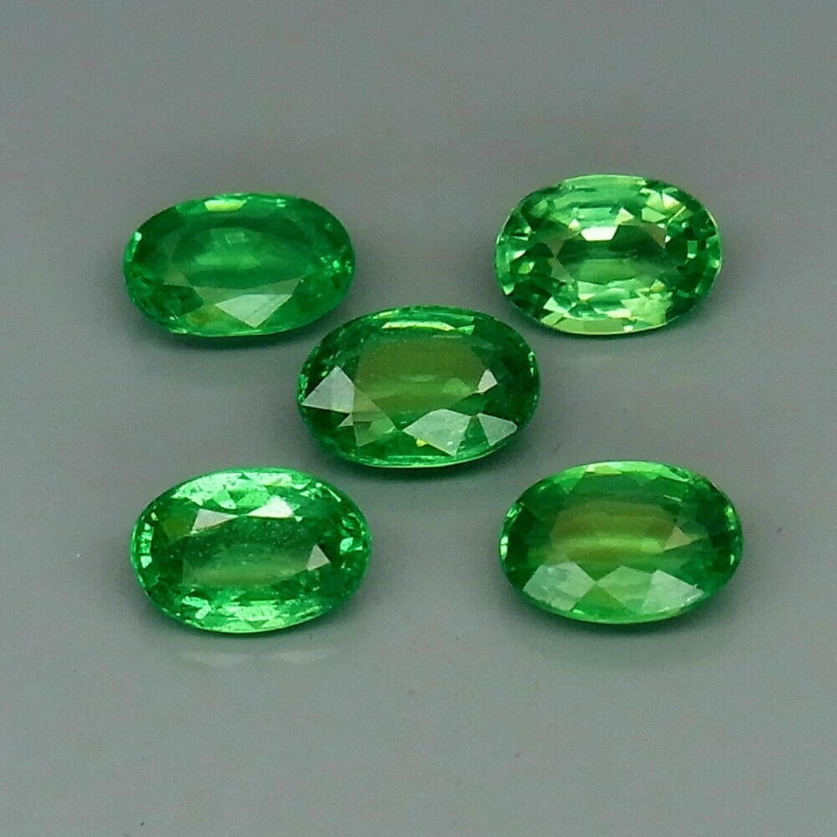 Tsavorite Garnet SHAPE Oval WEIGHT 2.25 Ct.SIZE 6 X 4 mm QUANTITY 5 PiecesCOLORTop GreenCLARITYVS & SI LUSTER Superior ORIGIN Tanzania TREATMENT None HARDNESS 7-7.5