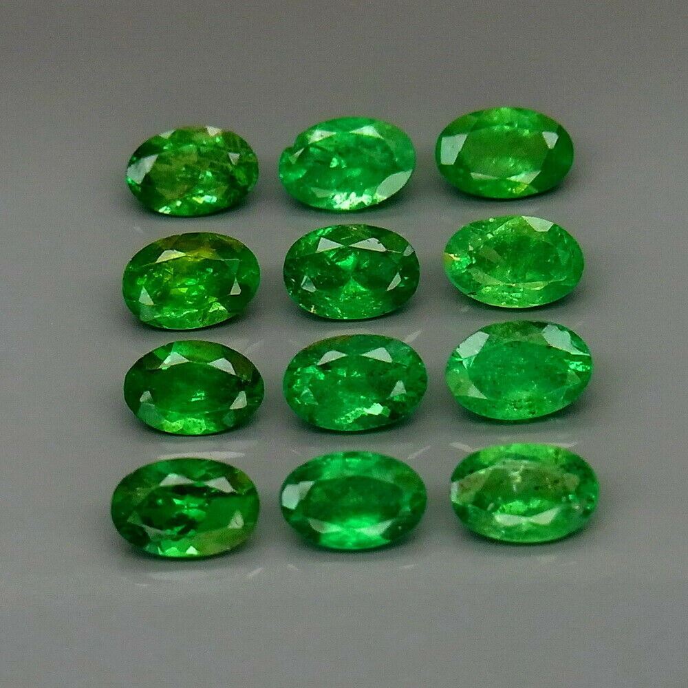 Tsavorite Garnet SHAPE Oval WEIGHT 6.63 Ct. SIZE 6 X 4 mm QUANTITY 12 Pieces COLOR Top Green CLARITY - same as image; LUSTER Superior ORIGIN Tanzania TREATMENT none; HARDNESS7-7.5