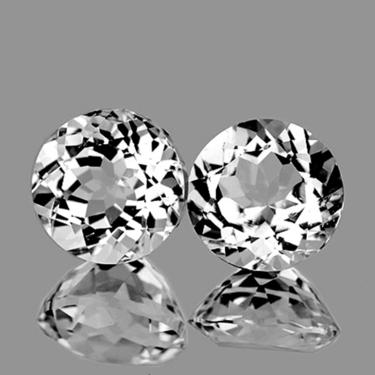 Natural White Topaz WEIGHT : 15.50 cts; SHAPE : Round; SIZE ( L x W x D ) : 12.00 mm; QUANTITY : 2 pieces ( Perfectly Matched Pair) COLOR : White CLARITY : IF-VVS1 ORIGIN : Brazil HARDNESS : 8 LUSTER : Excellent!!! TREATMENT : Unheated