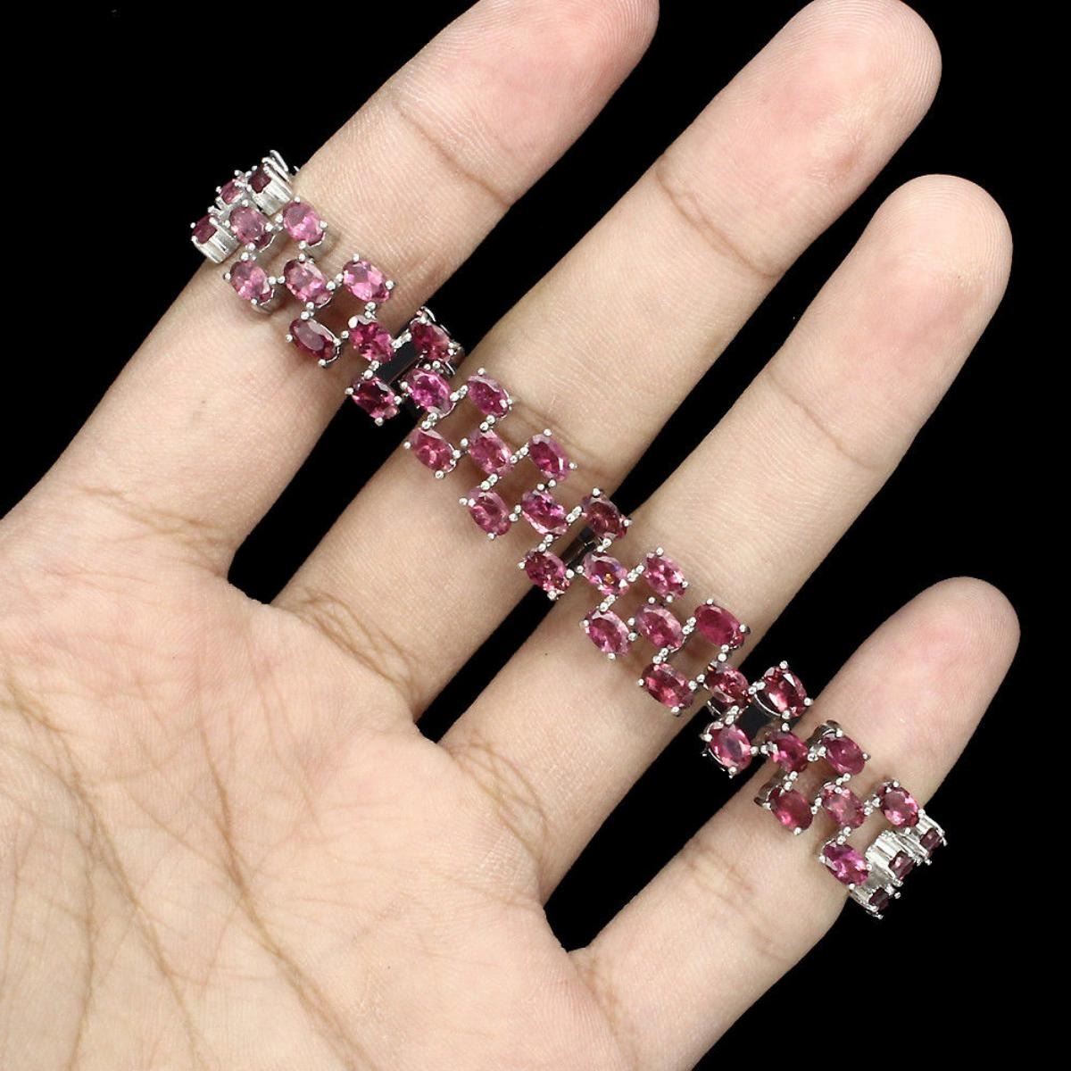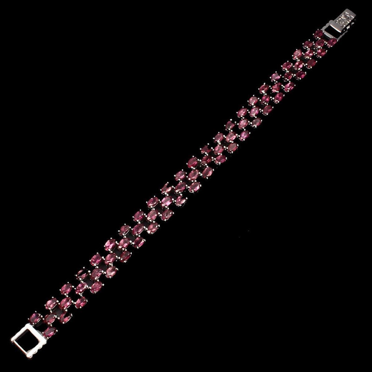 925 STERLING SILVER;PLATE14K WHITE GOLD;LENGTH (INCHES)7.5;MAIN STONE-TOURMALINE;TOTAL WEIGHT...109.02 CT (TOTAL WEIGHT OF SILVER + STONE)DIMENSION* STONE 4.0 X 3.0 MM. * FACE BRACELET 170.0 X 10.0 MM.MAIN STONE SHAPEOVAL CUTMAIN STONE COLORTOP RICH PINKCLARITY/GRADEIF TO VVSLUSTERPRECIOUSTREATMENTUNHEATEDORIGINBRAZILHARDNESS7.0 - 7.5