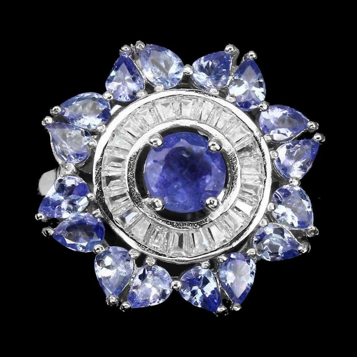 925 STERLING SILVER;PLATE...14K WHITE GOLD;RING SIZE6(resiable)MAIN STONETANZANITE;OTHER GEMSCUBIC ZIRCONIA;TOTAL WEIGHT29.85 CT (TOTAL WEIGHT OF SILVER + STONE)DIMENSION* STONE 4.0 X 3.0 TO 6.0 MM. * CZ 3.0 X 2.0 MM. * RING SIZE 6.0 * FACE RING 22.0 X 22.0 MM.;MAIN STONE SHAPEROUND CUT;MAIN STONE COLORTOP RICH BLUE VIOLET;CLARITY/GRADETRANSPARENT;LUSTERGORGEOUS;TREATMENTUNHEATED;ORIGINTANZANIA - AFRICA;HARDNESS7.0 - 7.5