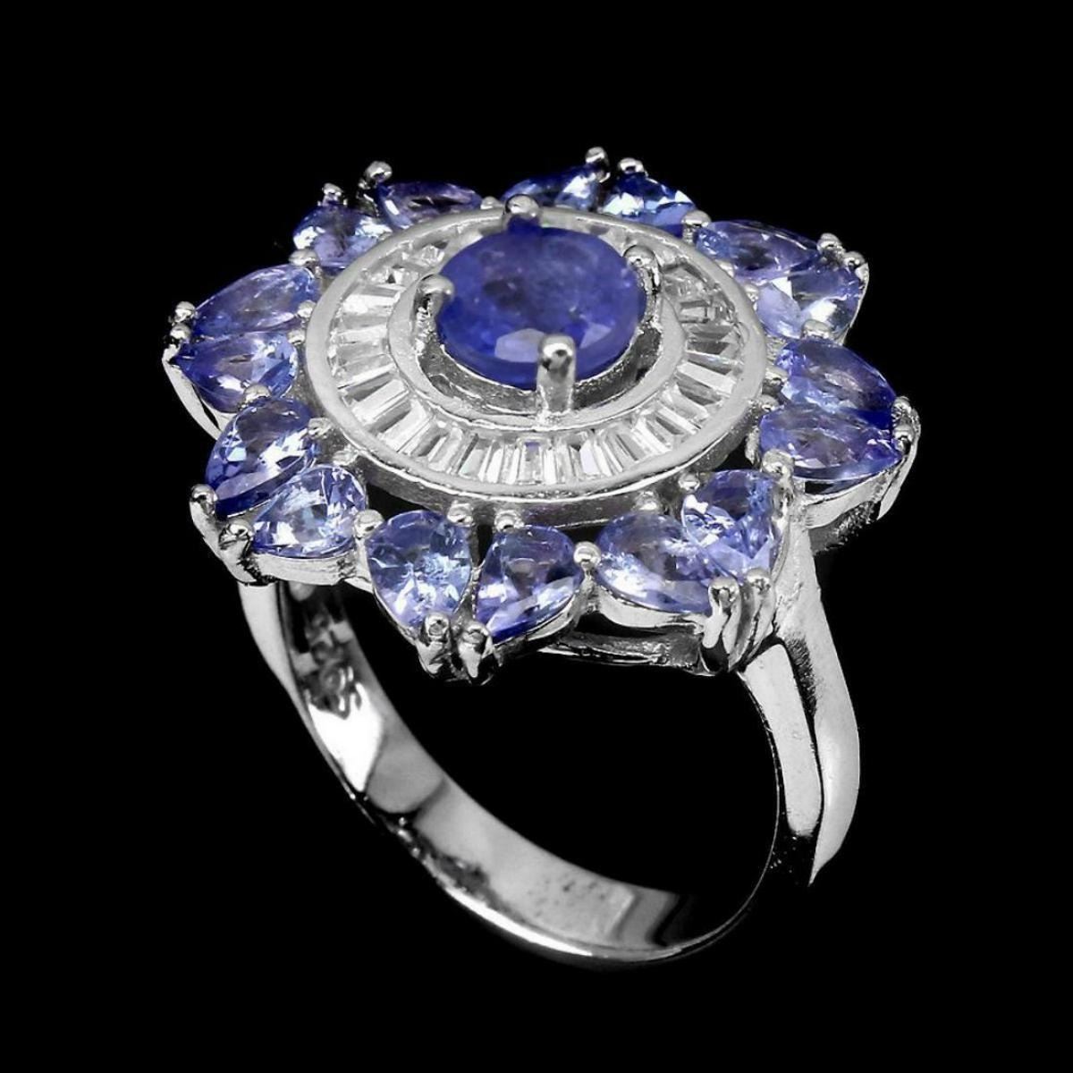 925 STERLING SILVER;PLATE...14K WHITE GOLD;RING SIZE6(resiable)MAIN STONETANZANITE;OTHER GEMSCUBIC ZIRCONIA;TOTAL WEIGHT29.85 CT (TOTAL WEIGHT OF SILVER + STONE)DIMENSION* STONE 4.0 X 3.0 TO 6.0 MM. * CZ 3.0 X 2.0 MM. * RING SIZE 6.0 * FACE RING 22.0 X 22.0 MM.;MAIN STONE SHAPEROUND CUT;MAIN STONE COLORTOP RICH BLUE VIOLET;CLARITY/GRADETRANSPARENT;LUSTERGORGEOUS;TREATMENTUNHEATED;ORIGINTANZANIA - AFRICA;HARDNESS7.0 - 7.5
