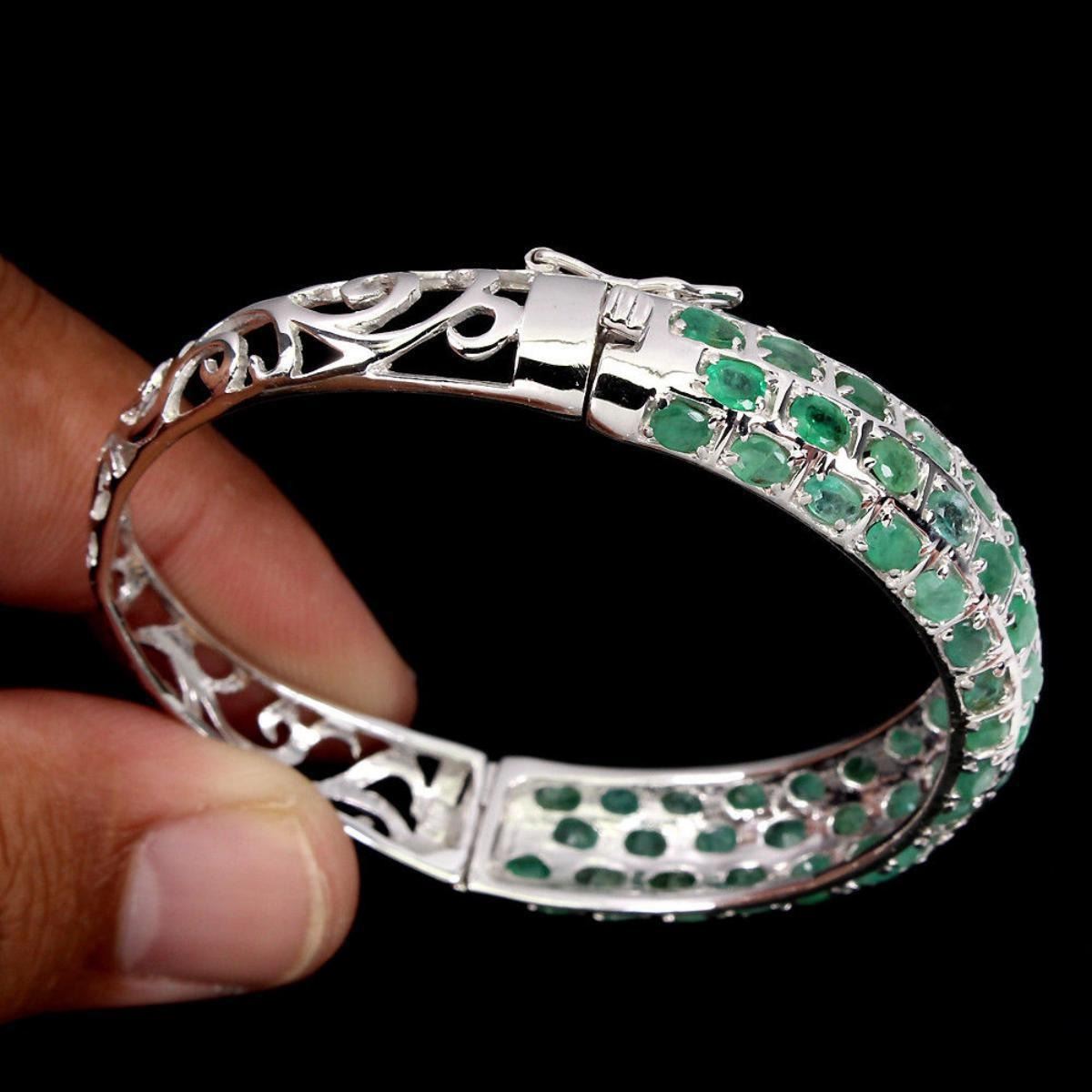 925 STERLING SILVER;PLATE14K WHITE GOLD;LENGTH (INCHES)2MAIN STONEEMERALDTOTAL WEIGHT113.45 CT (TOTAL WEIGHT OF SILVER + STONE)DIMENSION* STONE 4.0 X 3.0 MM. * DIAMETER 2.0 INCHES. * FACE BANGLE 64.0 X 12.0 MM.MAIN STONE SHAPEOVAL CUTMAIN STONE COLORTOP RICH GREENCLARITY/GRADETRANSPARENTLUSTERSUMPTUOUSTREATMENTUNHEATEDORIGINBRAZILHARDNESS7.5 - 8.0