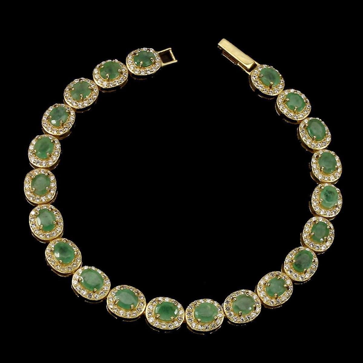925 STERLING SILVER...PLATE14K YELLOW GOLD;LENGTH (INCHES)7.5MAIN STONEEMERALDOTHER GEMSCUBIC ZIRCONIATOTAL WEIGHT82.33 CT (TOTAL WEIGHT OF SILVER + STONE)DIMENSION* STONE 5.0 X 4.0 MM. * CZ 1.0 MM. * FACE BRACELET 181.0 X 7.0 MM.MAIN STONE SHAPEOVAL CUTMAIN STONE COLORTOP RICH GREENCLARITY/GRADETRANSPARENTLUSTERPRECIOUSTREATMENTUNHEATEDORIGINBRAZILHARDNESS7.5 - 8.0