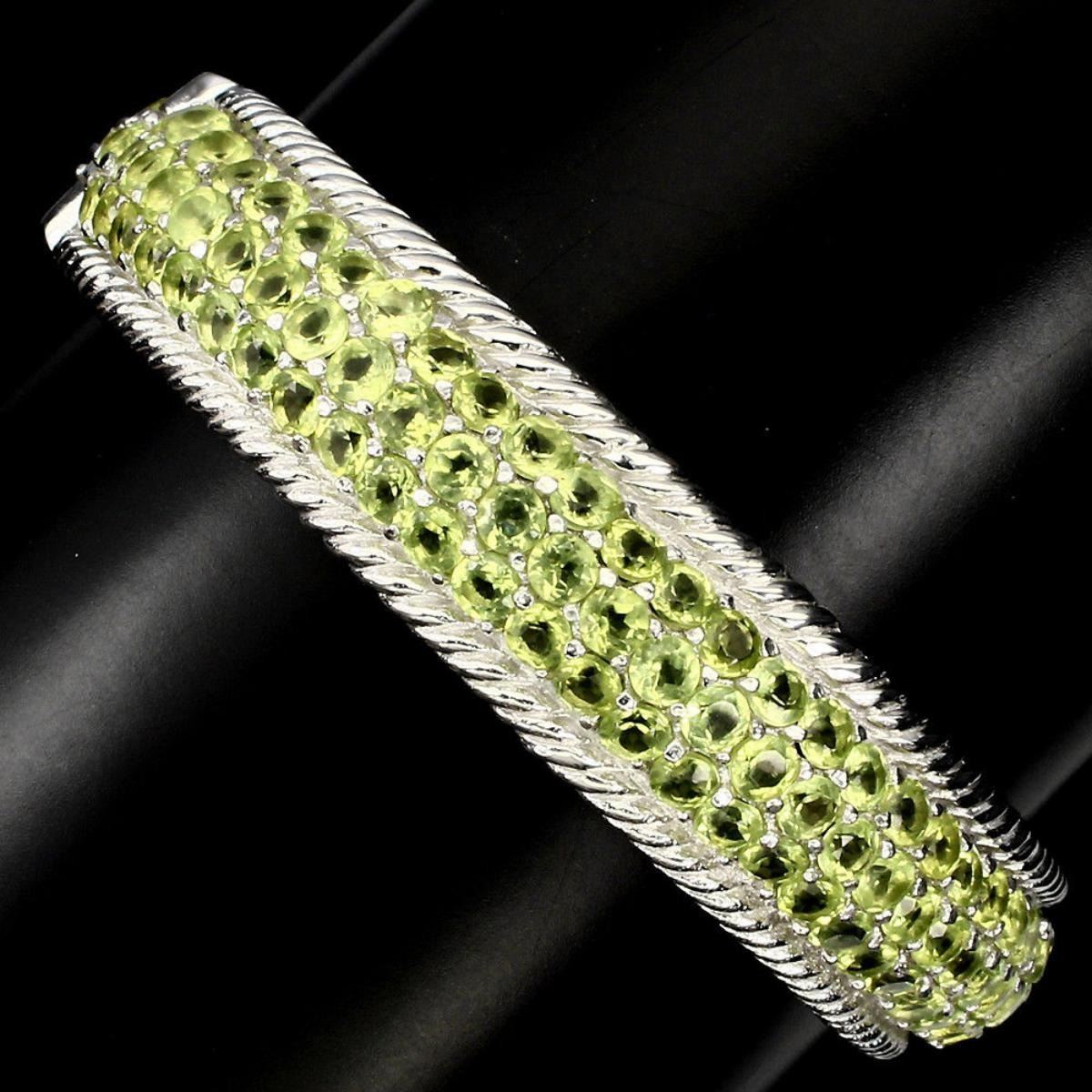 925 STERLING SILVER;PLATE...14K WHITE GOLD;MAIN STONEPERIDOTOTHER GEMSTOTAL WEIGHT169.50 CT (TOTAL WEIGHT OF SILVER + STONE)DIMENSION* STONE 3.0 MM. * DIAMETER 2.0 INCHES. * FACE BANGLE 63.0 X 10.0 MM.MAIN STONE SHAPEROUND CUTMAIN STONE COLORTOP RICH GREENCLARITY/GRADEIF TO VVSLUSTERMESMERIZINGTREATMENTUNHEATEDORIGINPAKISTANHARDNESS6.5 - 7.0