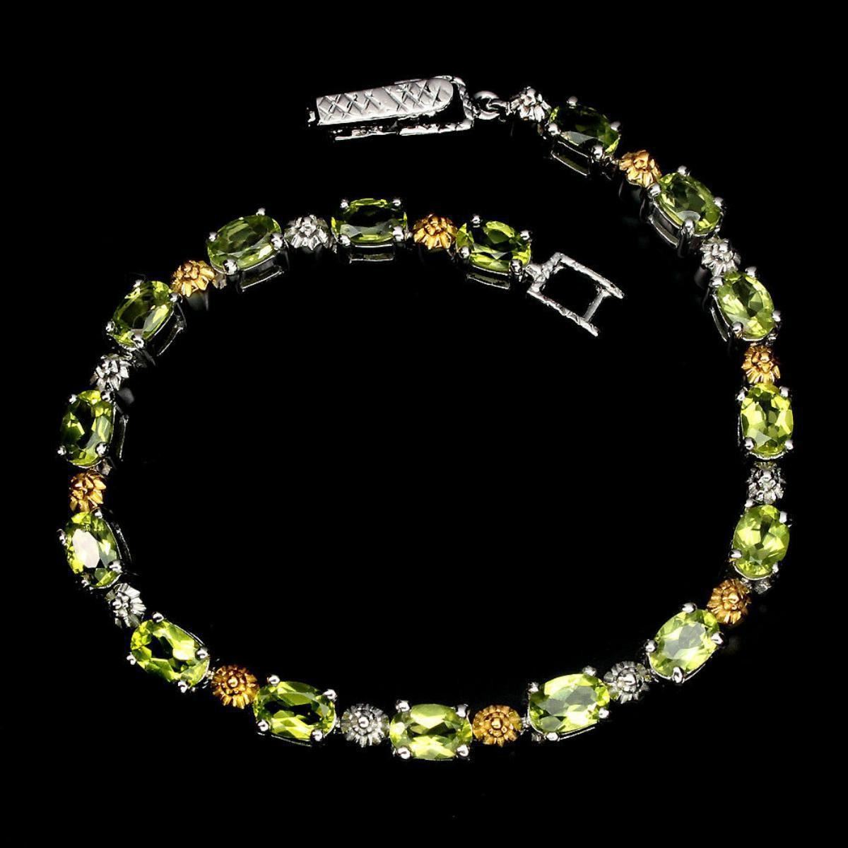 925 STERLING SILVER;PLATE2-TONE WHITE & YELLOW 14K GOLD;LENGTH (INCHES)7MAIN STONEPERIDOT;OTHER GEMS;TOTAL WEIGHT65.21 CT (TOTAL WEIGHT OF SILVER + STONE)DIMENSION* STONE 6.0 X 4.0 MM. * FACE BRACELET 160.0 X 5.0 MM.MAIN STONE SHAPEOVAL CUT;MAIN STONE COLORTOP RICH GREEN;CLARITY/GRADEIF TO VVS;LUSTERRAVISHING;TREATMENTUNHEATED;ORIGINPAKISTAN;HARDNESS6.5 - 7.0