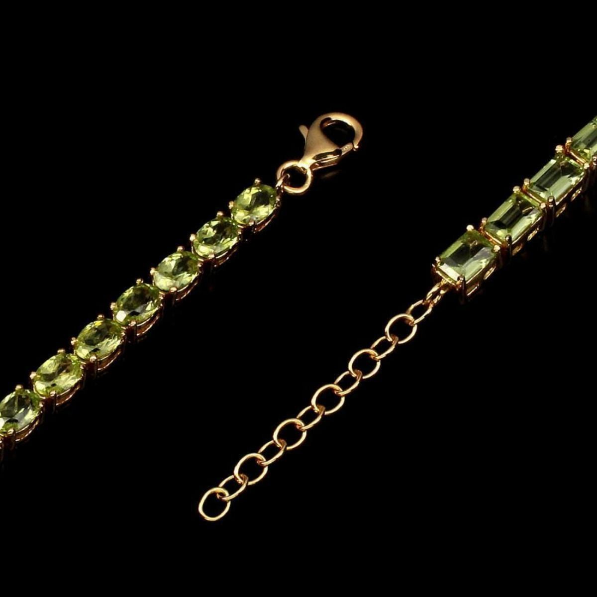 925 STERLING SILVER;PLATE14K YELLOW GOLD;LENGTH (INCHES)9;MAIN STONEPERIDOT;TOTAL WEIGHT83.19 CT (TOTAL WEIGHT OF SILVER + STONE)DIMENSION* STONE 6.0 X 4.0 MM. * FACE BRACELET 180.0 X 11.0 MM.MAIN STONE SHAPEOCTAGON CUTMAIN STONE COLORTOP RICH GREENCLARITY/GRADEIF TO VVSLUSTERPRECIOUSTREATMENTUNHEATEDORIGINPAKISTANHARDNESS6.5 - 7.0