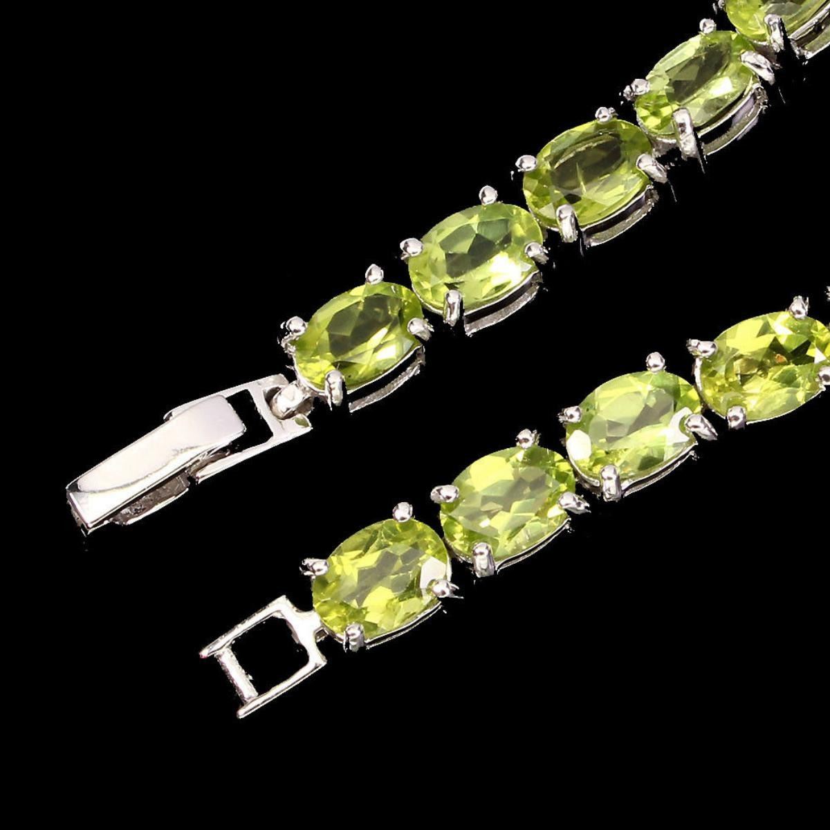 925 STERLING SILVERPLATE14K WHITE GOLDLENGTH (INCHES)7.5MAIN STONEPERIDOTOTHER GEMSTOTAL WEIGHT83.42 CT (TOTAL WEIGHT OF SILVER + STONE)DIMENSION* STONE 7.0 X 5.0 MM. * FACE BRACELET 170.0 X 6.0 MM.MAIN STONE SHAPEOVAL CUTMAIN STONE COLORTOP RICH GREENCLARITY/GRADEIF TO VVSLUSTERMESMERIZINGTREATMENTUNHEATEDORIGINPAKISTAN
