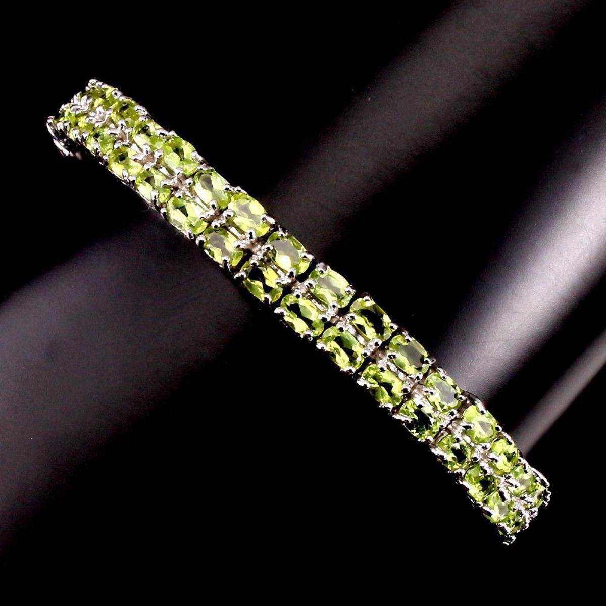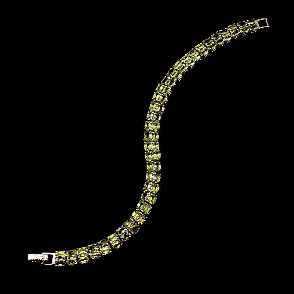 925 STERLING SILVER;PLATE....14K WHITE GOLD....;LENGTH (INCHES)8MAIN STONEPERIDOTOTHER GEMSTOTAL WEIGHT98.93 CT (TOTAL WEIGHT OF SILVER + STONE)DIMENSION* STONE 4.0 X 3.0 MM. * FACE BRACELET 180.0 X 7.0 MM.MAIN STONE SHAPEOVAL CUTMAIN STONE COLORTOP RICH GREENCLARITY/GRADEIF TO VVSLUSTERMESMERIZINGTREATMENTUNHEATEDORIGINPAKISTANHARDNESS6.5 - 7.0