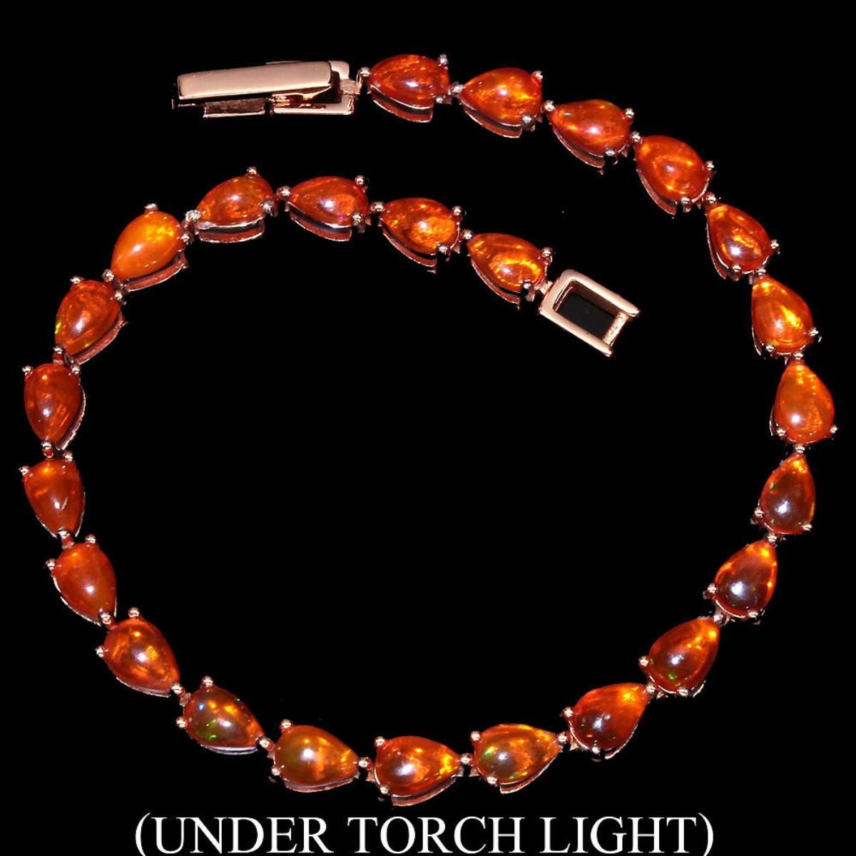 925 STERLING SILVER;PLATE14K ROSE GOLD;LENGTH (INCHES)7.5;MAIN STONEFIRE OPAL;TOTAL WEIGHT52.96 CT (TOTAL WEIGHT OF SILVER + STONE)DIMENSION* STONE 6.0 X 4.0 MM. * FACE BRACELET 173.0 X 4.0 MM.MAIN STONE SHAPEPEAR CABOCHONMAIN STONE COLORTOP RICH ORANGECLARITY/GRADETRANSPARENTLUSTERGORGEOUSTREATMENTHEATED ORIGINETHIOPIAHARDNESS5.5 - 6.5