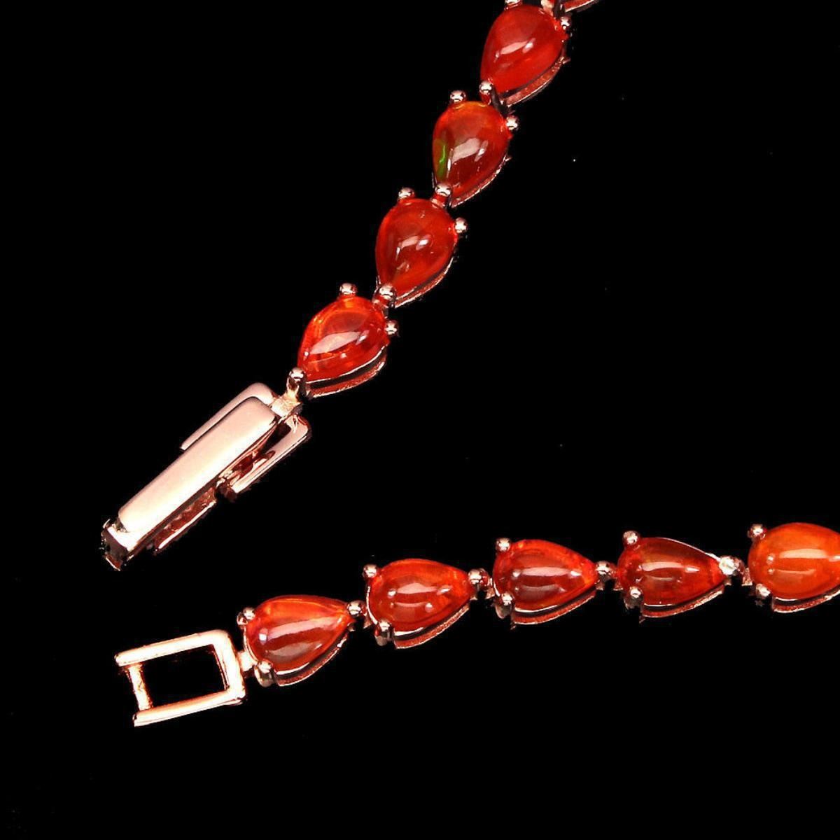 925 STERLING SILVER;PLATE14K ROSE GOLD;LENGTH (INCHES)7.5;MAIN STONEFIRE OPAL;TOTAL WEIGHT52.96 CT (TOTAL WEIGHT OF SILVER + STONE)DIMENSION* STONE 6.0 X 4.0 MM. * FACE BRACELET 173.0 X 4.0 MM.MAIN STONE SHAPEPEAR CABOCHONMAIN STONE COLORTOP RICH ORANGECLARITY/GRADETRANSPARENTLUSTERGORGEOUSTREATMENTHEATED ORIGINETHIOPIAHARDNESS5.5 - 6.5