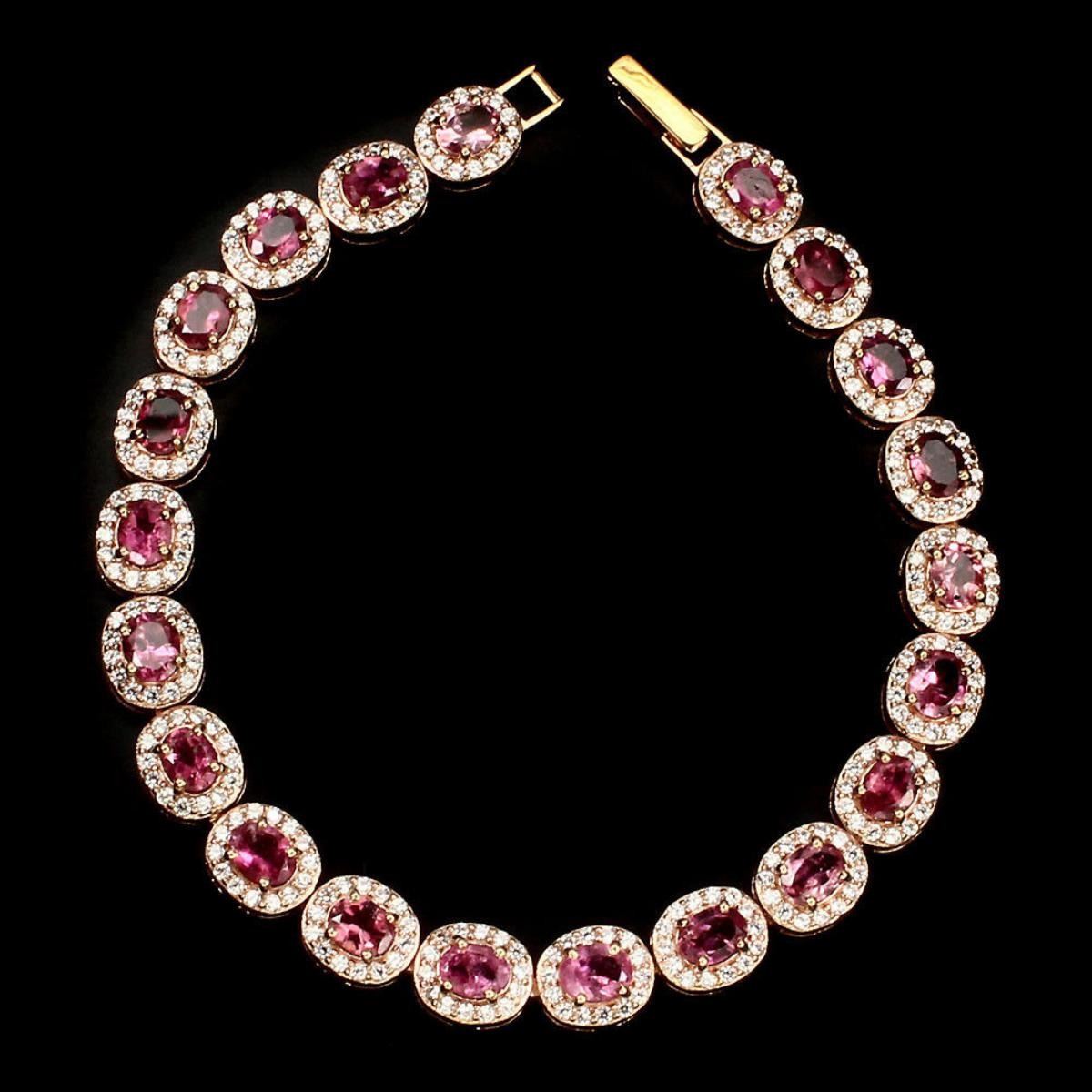 925 STERLING SILVER;PLATE14K ROSE GOLD;LENGTH (INCHES)8;MAIN STONETOURMALINE;OTHER GEMSCUBIC ZIRCONIA;TOTAL WEIGHT74.50 CT (TOTAL WEIGHT OF SILVER + STONE)DIMENSION* STONE 5.0 X 4.0 MM. * CZ 1.0 MM. * FACE BRACELET 180.0 X 7.0 MM.;MAIN STONE SHAPEOVAL CUT;MAIN STONE COLORTOP RICH PINK;CLARITY/GRADEIF TO VVS;LUSTERMESMERIZING;TREATMENTUNHEATED;ORIGINBRAZIL;HARDNESS7.0 - 7.5;
