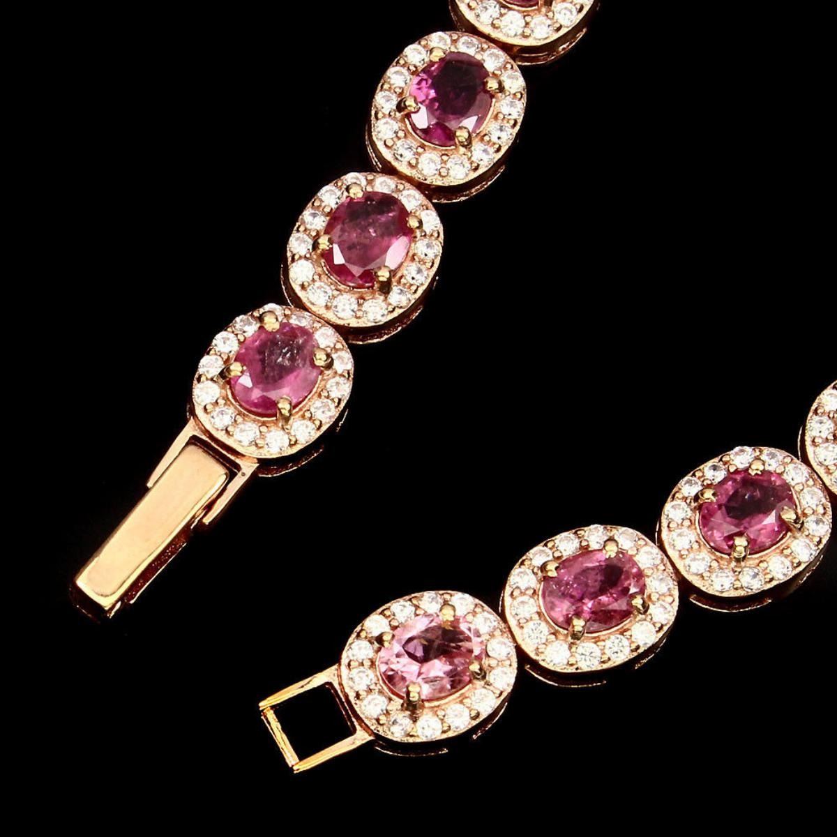 925 STERLING SILVER;PLATE14K ROSE GOLD;LENGTH (INCHES)8;MAIN STONETOURMALINE;OTHER GEMSCUBIC ZIRCONIA;TOTAL WEIGHT74.50 CT (TOTAL WEIGHT OF SILVER + STONE)DIMENSION* STONE 5.0 X 4.0 MM. * CZ 1.0 MM. * FACE BRACELET 180.0 X 7.0 MM.;MAIN STONE SHAPEOVAL CUT;MAIN STONE COLORTOP RICH PINK;CLARITY/GRADEIF TO VVS;LUSTERMESMERIZING;TREATMENTUNHEATED;ORIGINBRAZIL;HARDNESS7.0 - 7.5;