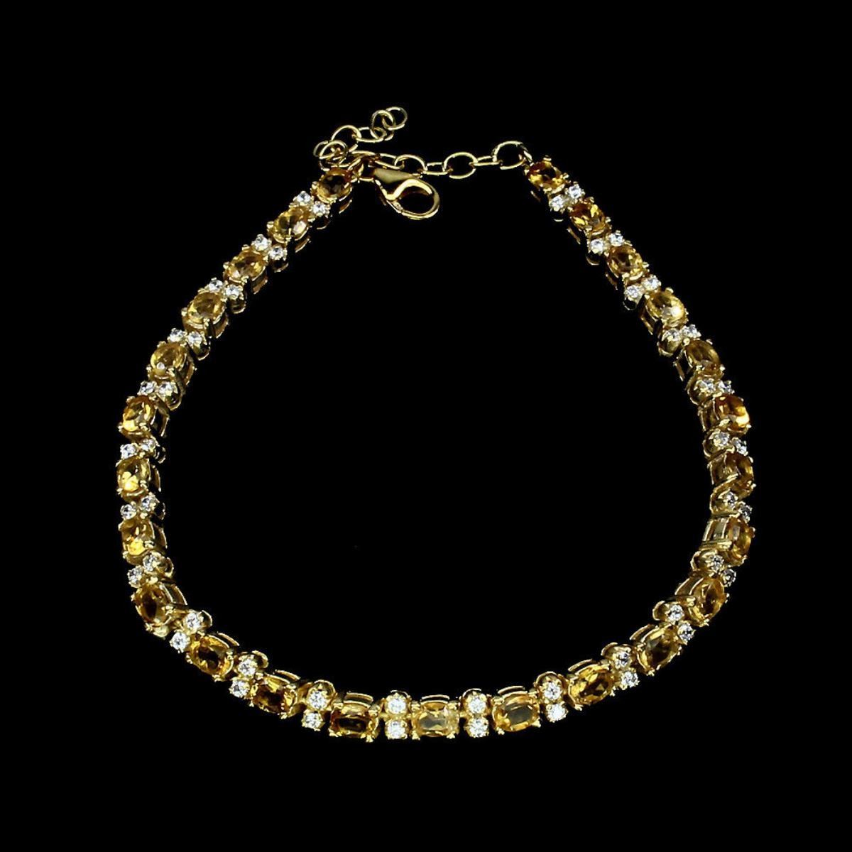 925 STERLING SILVER;PLATE14K YELLOW GOLD;LENGTH (INCHES)9;MAIN STONECITRINE;OTHER GEMSCUBIC ZIRCONIA;TOTAL WEIGHT56.53 CT (TOTAL WEIGHT OF SILVER + STONE)DIMENSION* STONE 4.0 X 3.0 MM. * CZ 1.5 MM. * FACE BRACELET 170.0 X 4.0 MM.MAIN STONE SHAPEOVAL CUTMAIN STONE COLORTOP RICH YELLOWCLARITY/GRADEIF TO VVSLUSTERMESMERIZINGTREATMENTUNHEATEDORIGINBRAZILHARDNESS7.0