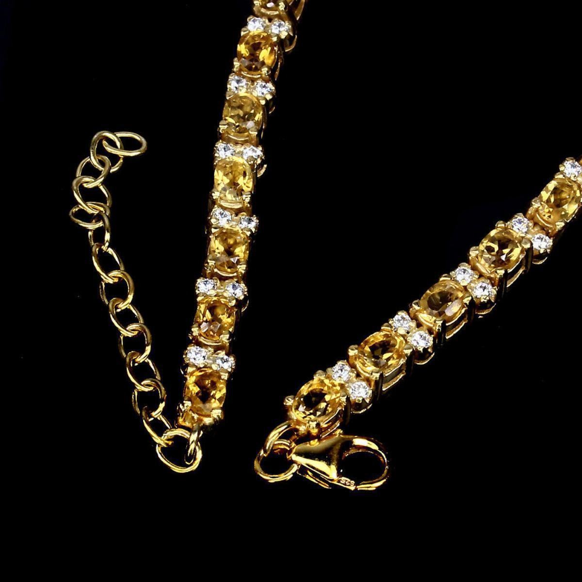 925 STERLING SILVER;PLATE14K YELLOW GOLD;LENGTH (INCHES)9;MAIN STONECITRINE;OTHER GEMSCUBIC ZIRCONIA;TOTAL WEIGHT56.53 CT (TOTAL WEIGHT OF SILVER + STONE)DIMENSION* STONE 4.0 X 3.0 MM. * CZ 1.5 MM. * FACE BRACELET 170.0 X 4.0 MM.MAIN STONE SHAPEOVAL CUTMAIN STONE COLORTOP RICH YELLOWCLARITY/GRADEIF TO VVSLUSTERMESMERIZINGTREATMENTUNHEATEDORIGINBRAZILHARDNESS7.0