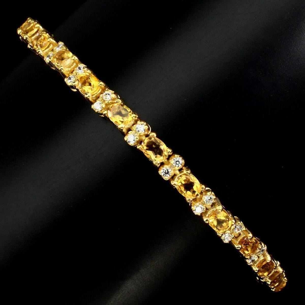 925 STERLING SILVER;PLATE14K YELLOW GOLD;LENGTH (INCHES)9;MAIN STONECITRINE;OTHER GEMSCUBIC ZIRCONIA;TOTAL WEIGHT56.53 CT (TOTAL WEIGHT OF SILVER + STONE)DIMENSION* STONE 4.0 X 3.0 MM. * CZ 1.5 MM. * FACE BRACELET 170.0 X 4.0 MM.MAIN STONE SHAPEOVAL CUTMAIN STONE COLORTOP RICH YELLOWCLARITY/GRADEIF TO VVSLUSTERMESMERIZINGTREATMENTUNHEATEDORIGINBRAZILHARDNESS7.0
