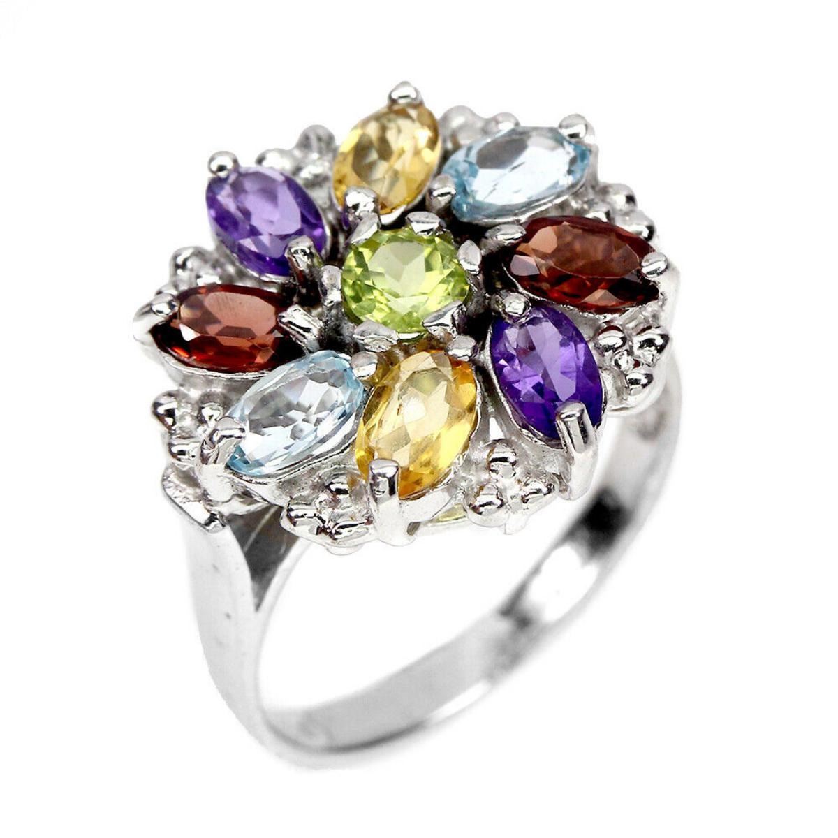 925 STERLING SILVER;PLATE-14K WHITE GOLD;RING SIZE-6(RESIZABLE);MAIN STONE-SKY BLUE TOPAZ;OTHER GEMS-AMETHYST, CITRINE, MOZAMBIQUE GARNET, PERIDOT;TOTAL WEIGHT-4.66 GRAM (TOTAL WEIGHT OF SILVER + STONE);DIMENSION-* STONE 5.0 TO 6.0 X 3.0 MM.* RING SIZE 6.0* FACE RING 18.0 X 16.0 MM.;MAIN STONE SHAPE-OVAL CUT;MAIN STONE COLOR- SKY BLUE;CLARITY/GRADE-IF;TREATMENT-YES;ORIGIN-AFRICA;HARDNESS-8.0;