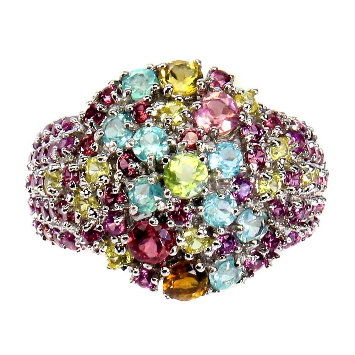 925 STERLING SILVER;PLATE-14K WHITE GOLD;RING SIZE/resizeable-8;MAIN STONE---APATITE, PERIDOT, RHODOLITE GARNET;TOTAL WEIGHT-5.66 GRAM (TOTAL WEIGHT OF SILVER + STONE)DIMENSION-* STONE 1.5 TO 3.0 MM. * RING SIZE 8.0 * FACE RING 22.0 X 17.0 MM.;MAIN STONE SHAPE-ROUND CUT;MAIN STONE COLOR-MULTI-COLOR;CLARITY/GRADE-IF TO VVS;TREATMENT-UNHEATED;ORIGIN-BRAZIL;HARDNESS-7.0-7.5;