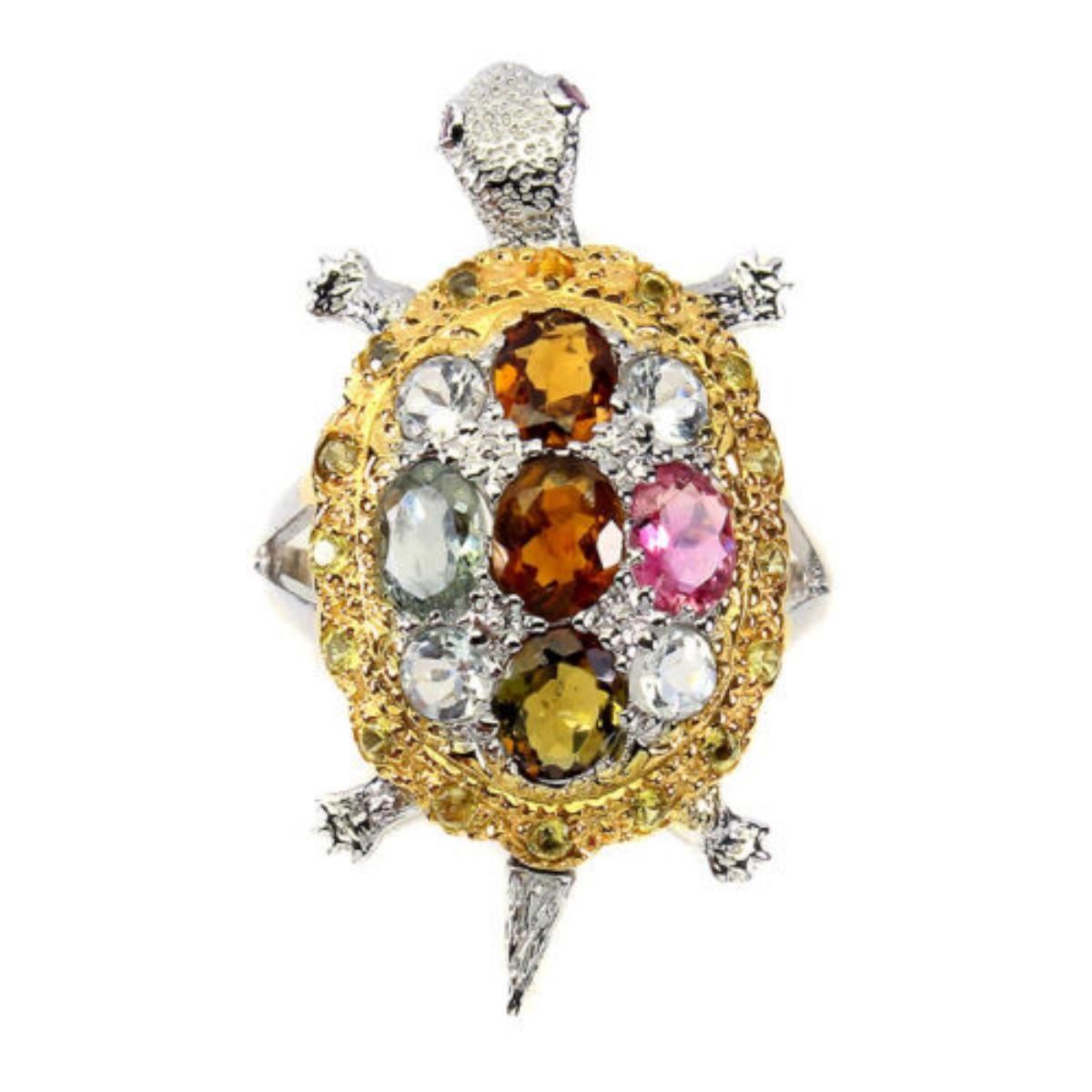 925 STERLING SILVER;PLATE2-TONE WHITE & YELLOW 14K GOLD;RING SIZE/resizable-8;MAIN STONE-TOURMALINEOTHER GEMS-AQUAMARINE, RHODOLITE GARNET, SAPPHIRETOTAL WEIGHT-5.22 GRAM (TOTAL WEIGHT OF SILVER + STONE)DIMENSION-* STONE 1.5 TO 5.0 X 4.0 MM.;* FACE RING- 32.0 X 15.0 MM.;MAIN STONE SHAPE-OVAL CUT;MAIN STONE COLOR-MULTI-COLOR;CLARITY/GRADE-IF TO VVS;-TREATMENT-UNHEATED;ORIGIN-BRAZIL;HARDNESS-7.0-7.5;