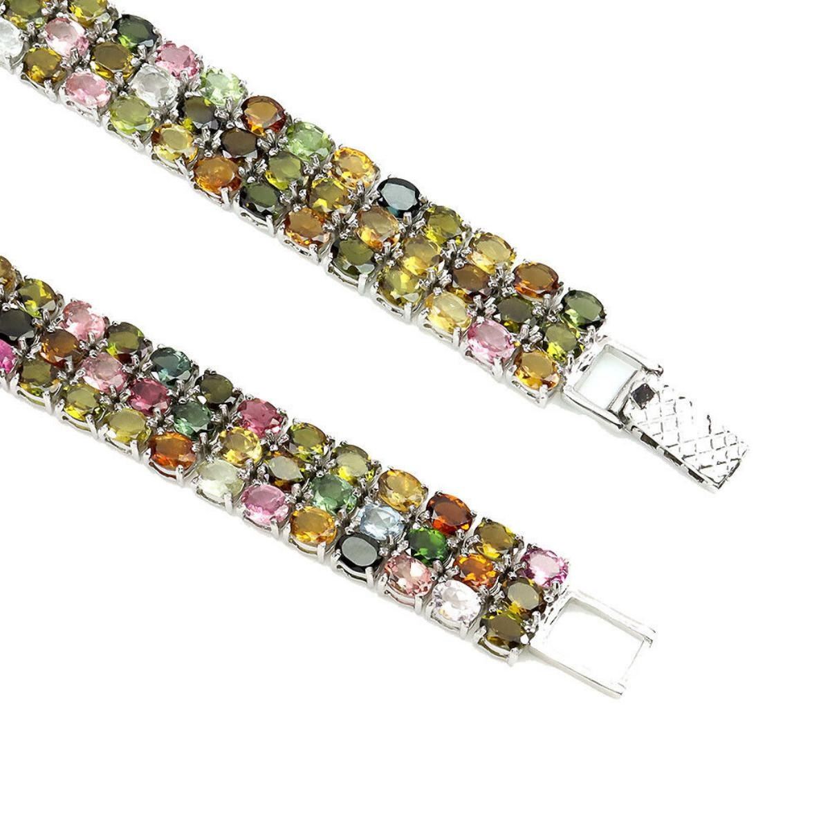 925 STERLING SILVER;PLATE-14K WHITE GOLD;LENGTH (INCHES)-7.5;MAIN STONE-TOURMALINE;TOTAL WEIGHT-27.93 GRAM (TOTAL WEIGHT OF SILVER + STONE);DIMENSION-* STONE 5.0 X 3.0 MM.* TOTAL LENGTH 7.5 INCHES.* FACE BRACELET 165.0 X 12.0 MM.;MAIN STONE SHAPE-OVAL; MAIN STONE COLOR-MULTI-COLOR;CLARITY/GRADE-IF TO VVS;TREATMENT-UNHEATED;ORIGIN-BRAZIL;HARDNESS-7.0-7.5;