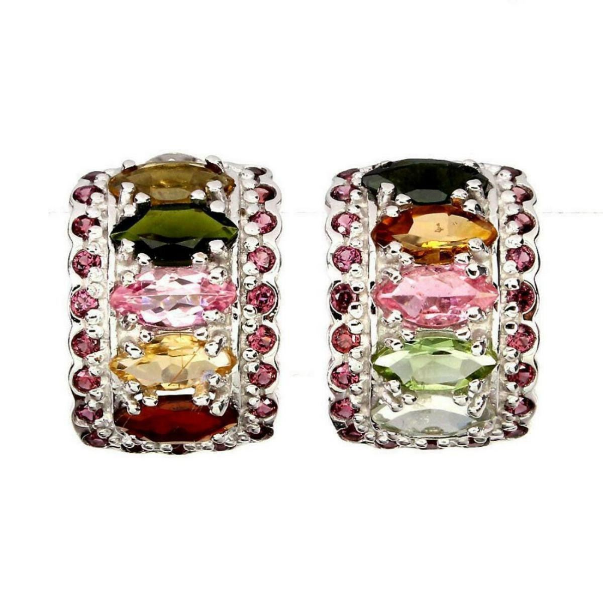 925 STERLING SILVER;PLATE14K WHITE GOLD;MAIN STONE-TOURMALINE;OTHER GEMS-RHODOLITE GARNET;TOTAL WEIGHT-27.57 CT (TOTAL WEIGHT OF SILVER + STONE)DIMENSION* STONE 1.5 TO 7.0 X 3.5 MM. * FACE EARRINGS 17.0 X 12.0 MM.;MAIN STONE SHAPE-MARQUISE CUT;MAIN STONE COLOR-MULTI-COLOR;CLARITY/GRADE-IF TO VVS;LUSTERGORGEOUS;TREATMENT-UNHEATEDORIGIN-BRAZIL;HARDNESS7.0 - 7.5;