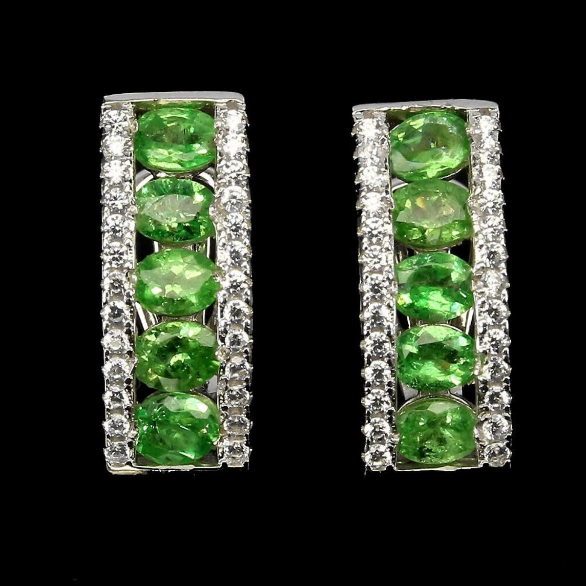 925 STERLING SILVER;PLATE-14K WHITE GOLD;MAIN STONE-TSAVORITE GARNET;TOTAL WEIGHT-5.16 GRAM (TOTAL WEIGHT OF SILVER + STONE);DIMENSION-* STONE 4.0 X 3.0 MM.* FACE EARRINGS 18.0 X 7.0 MM.;MAIN STONE SHAPE-OVAL; MAIN STONE COLOR-GREEN;CLARITY/GRADE-IF TO VVS;TREATMENT-UNHEATED;ORIGIN-KENYA;HARDNESS-7.0 - 7.5;
